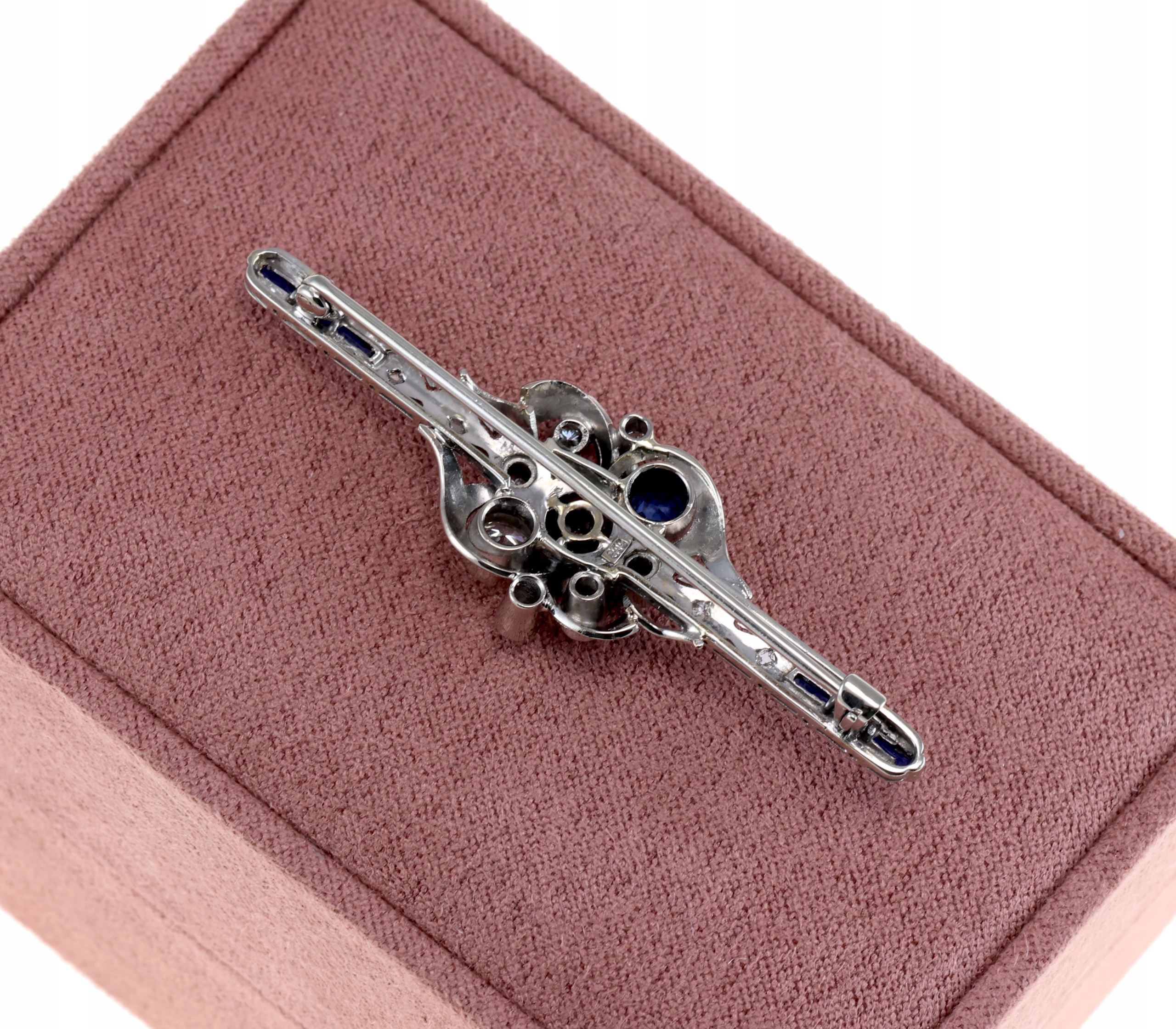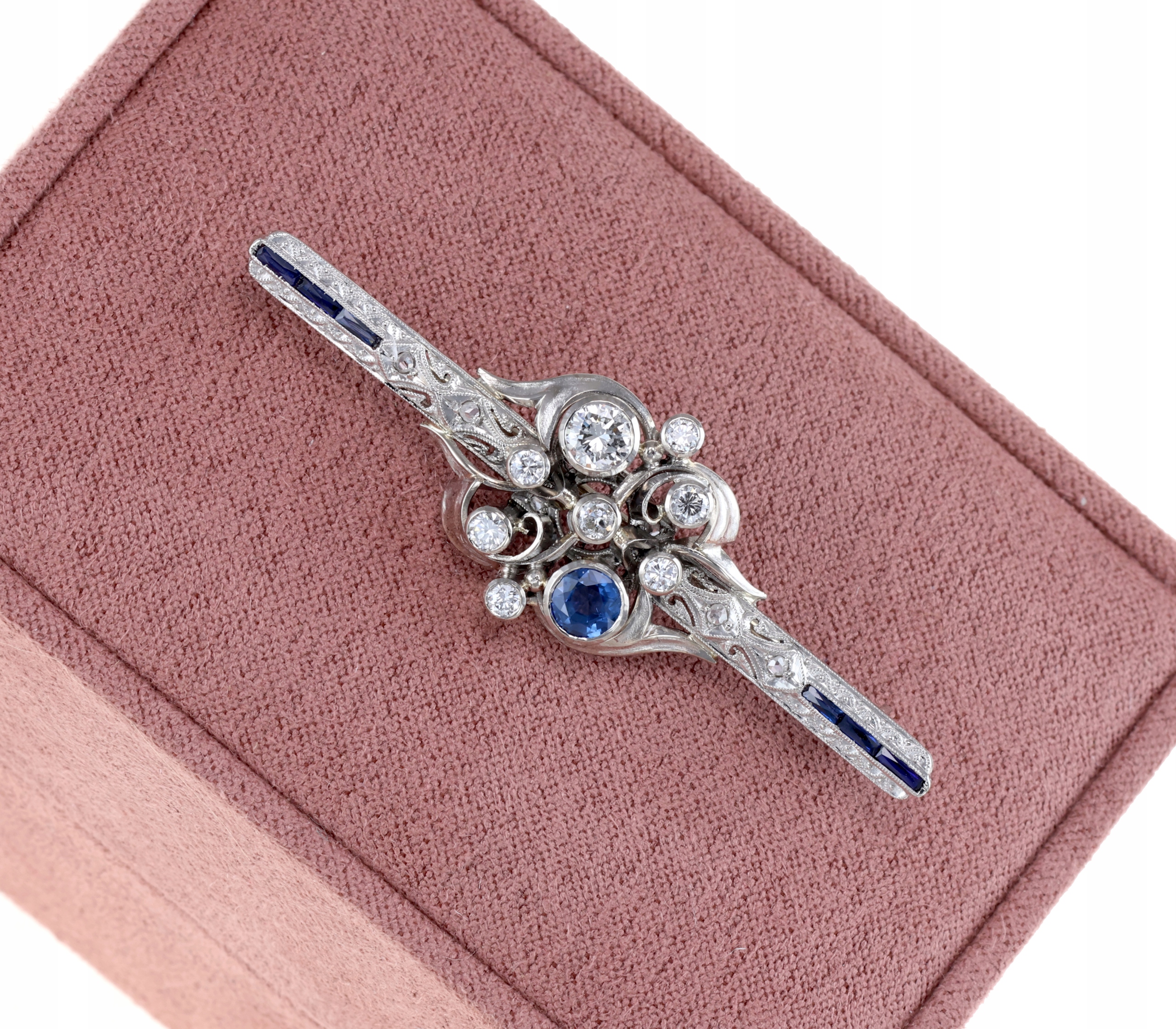 АНТИКВАРНА ПЛАТИНОВА БРОШКА З ДІАМАНТАМИ І САПФІРАМИ