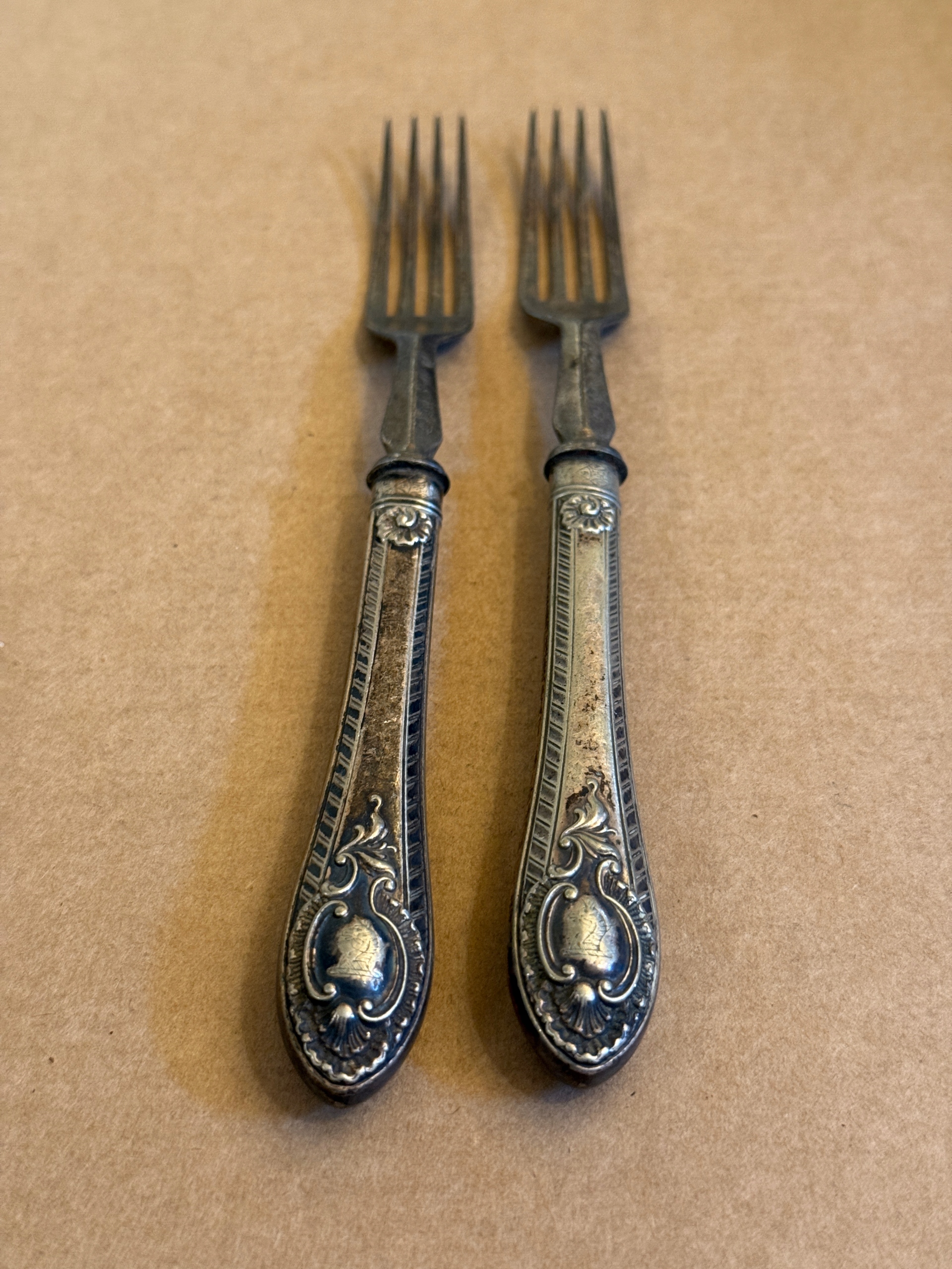 Антикварні 2 посріблені вилки A.R.&C. Paris стиль Rococo, Франція ХІХ/ХХ ст.