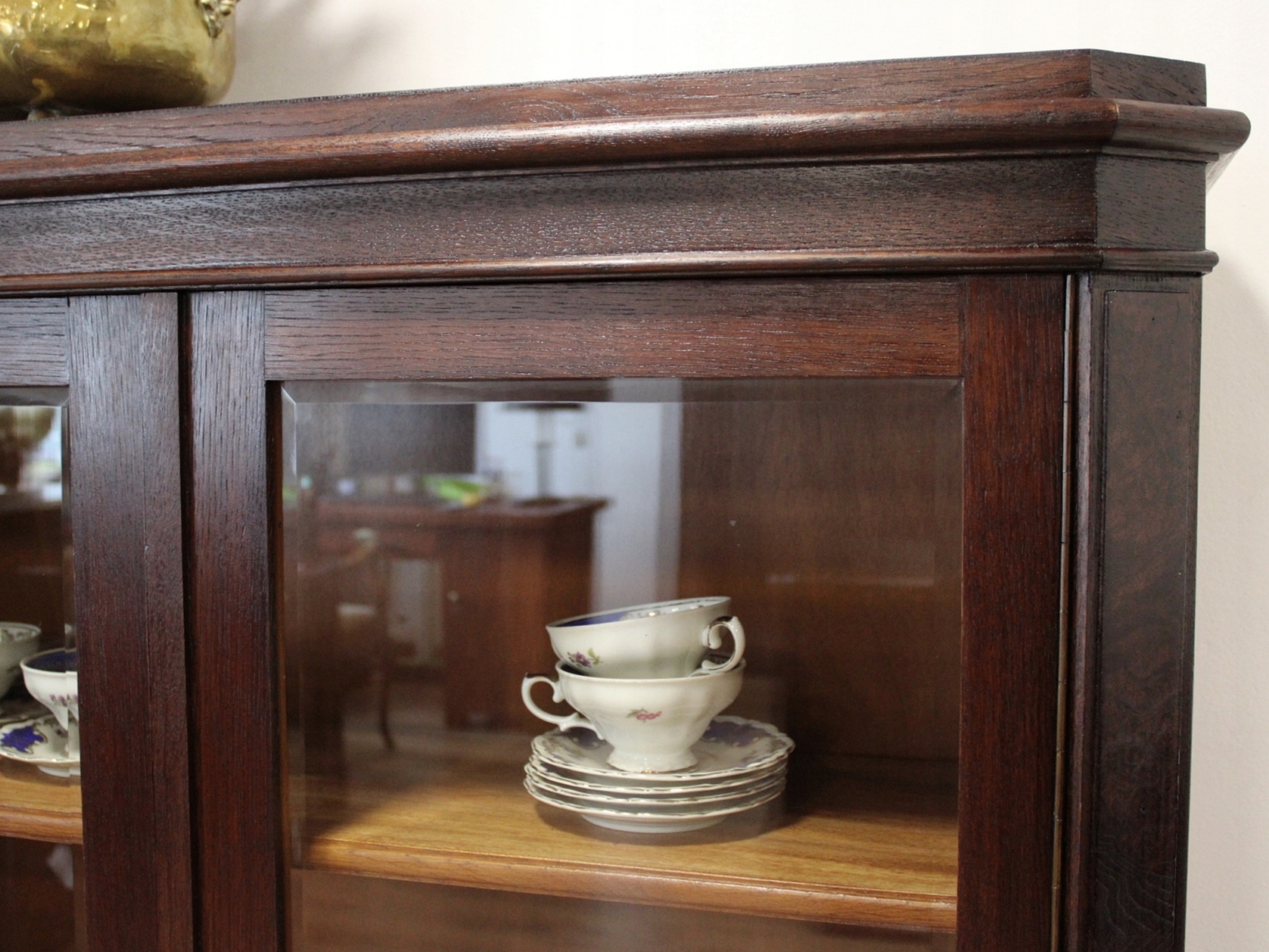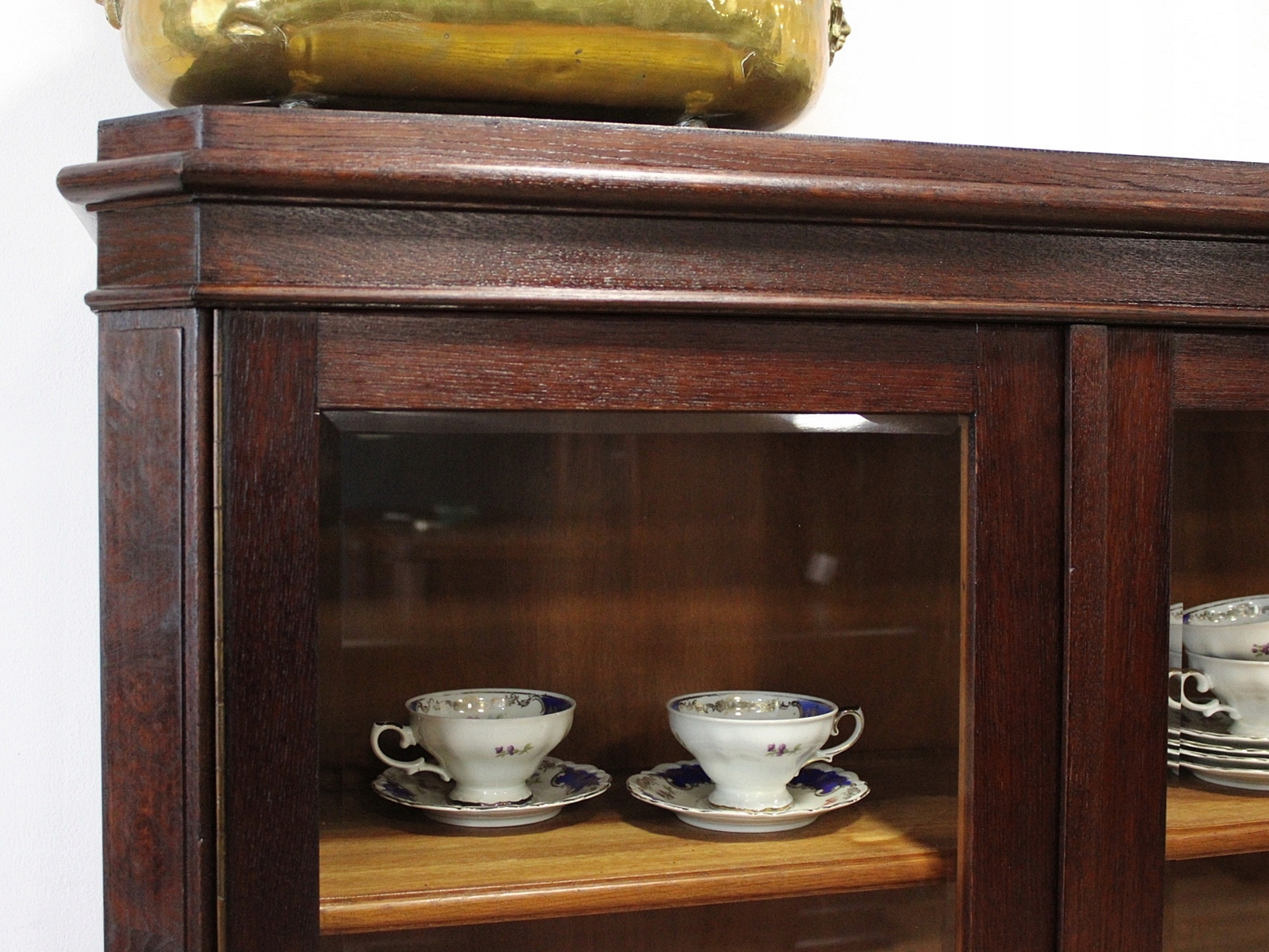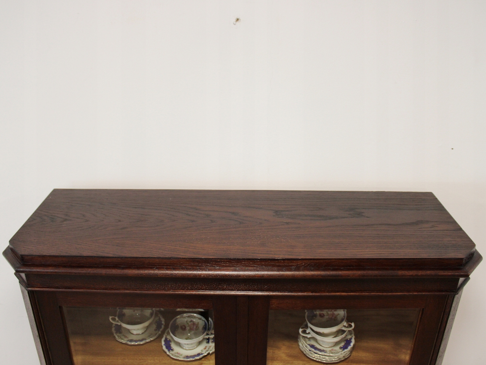Дуже хороший стан. Меблі готові до використання. Оновлено зовнішні поверхні та інтер’єр меблів. Меблі вже старі, а сліди минулого, які не впливають на їх естетичне сприйняття, є доказом автентичності меблів. Вітрину можна відразу заносити в квартиру.