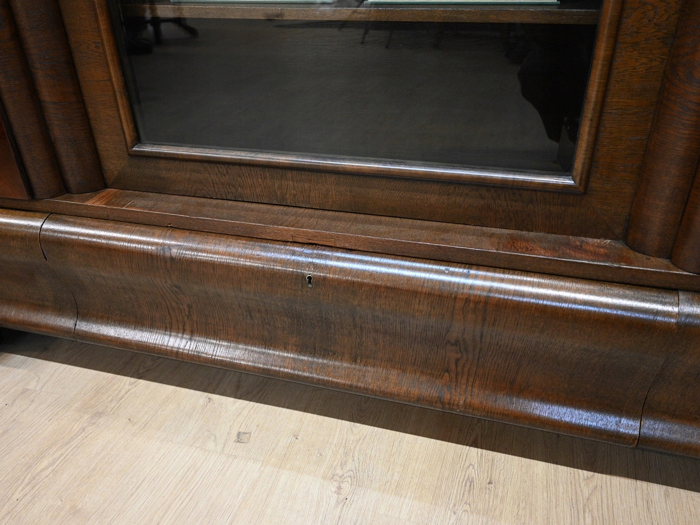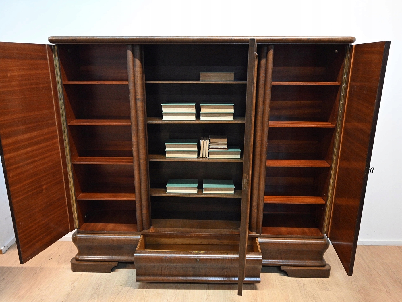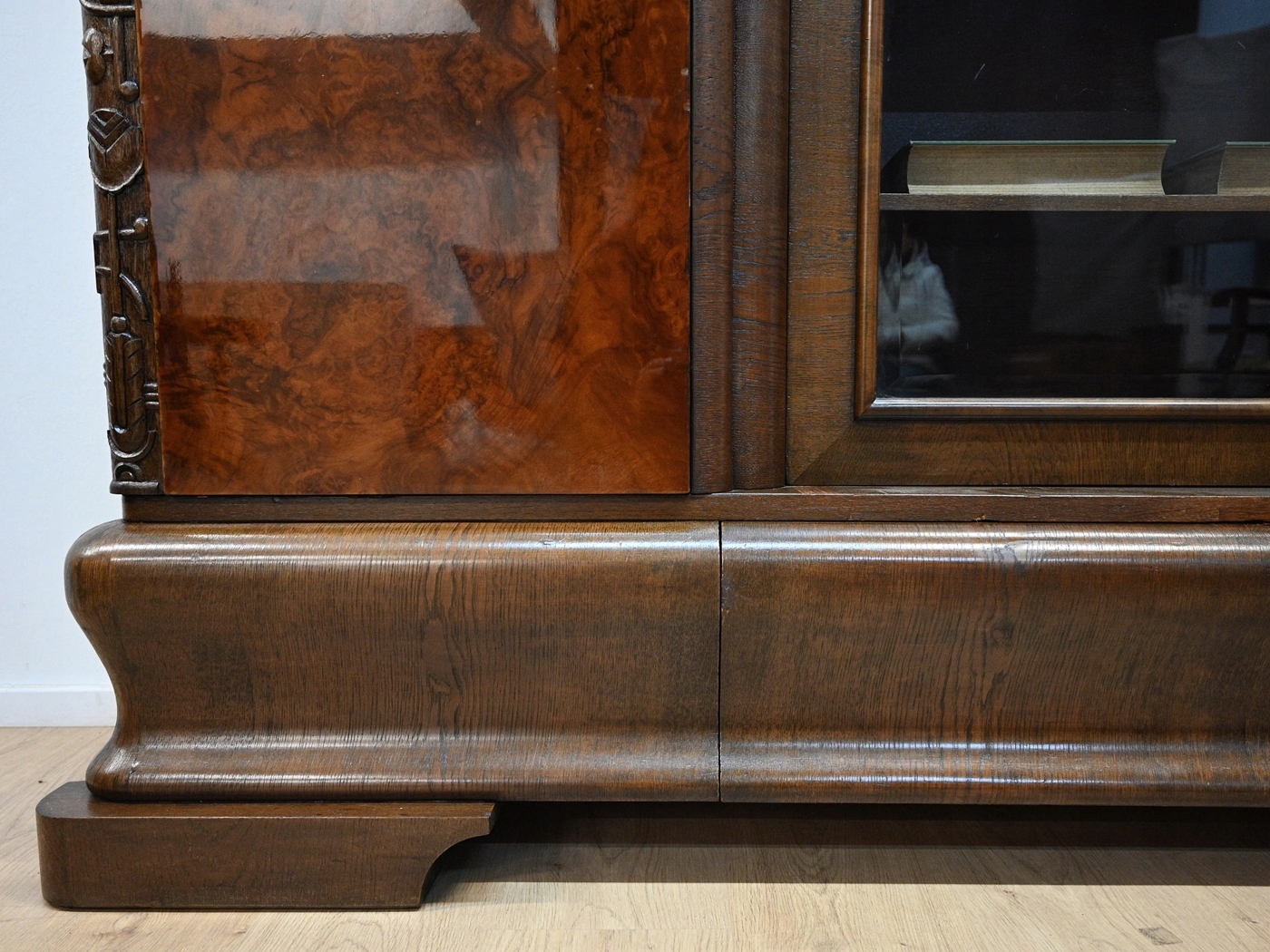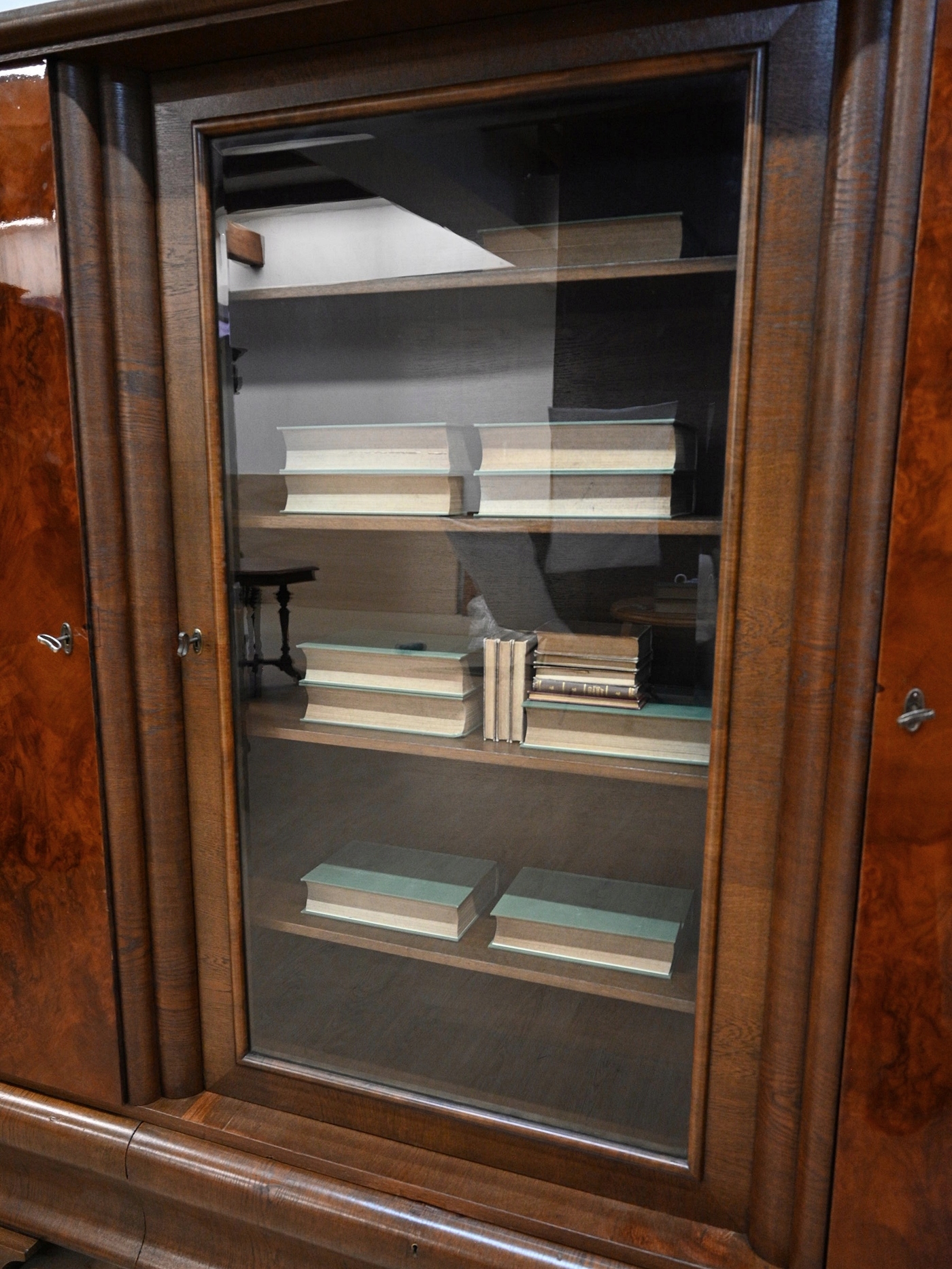 Дуже хороший стан. Меблі готові до використання. Оновлено зовнішні поверхні та інтер’єр меблів. Меблі вже старі, а сліди минулого, які не впливають на їх естетичне сприйняття, є доказом автентичності меблів. Бібліотека може бути заселена в квартиру відразу.