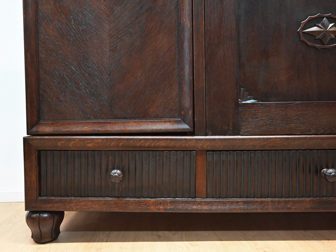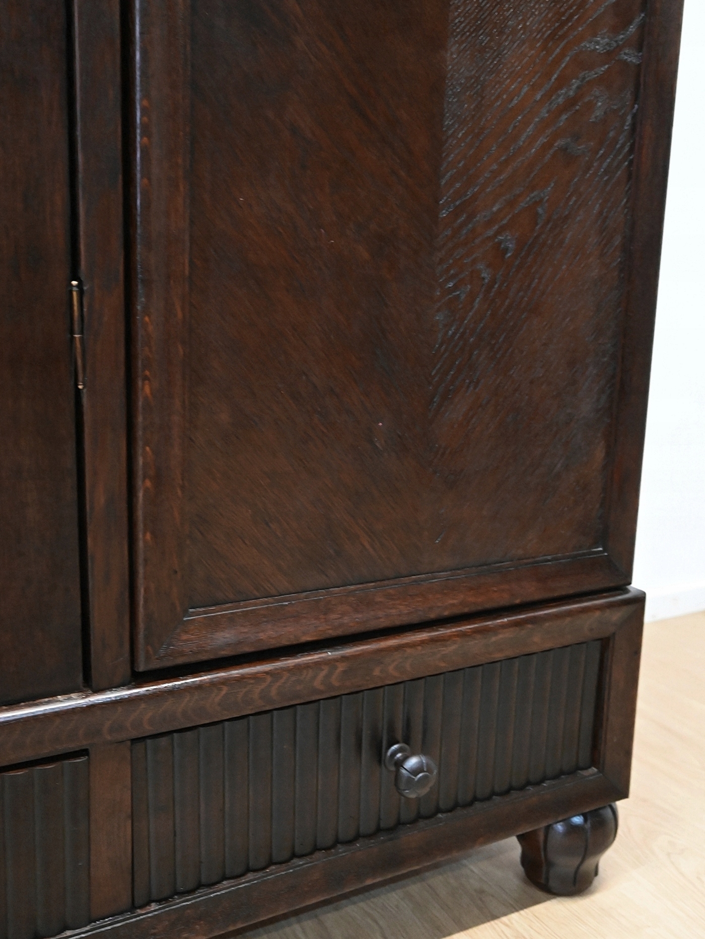 Гарний стан. Меблі готові до використання. Оновлено зовнішні поверхні та інтер’єр меблів. Меблі вже старі, а сліди минулого, які не впливають на їх естетичне сприйняття, є доказом автентичності меблів. Бібліотеку можна відразу заселяти в квартиру.
