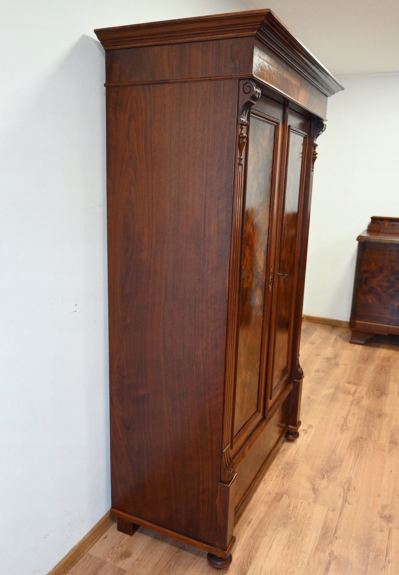 повністю з дерева, поважна шпона. Меблі, підготовлені до використання. Зовнішні поверхні та центр меблів були оновлені. Меблі вже мають свої роки та сліди минулого часу, що не впливає на його естетичний прийом, вони є свідченням справжності меблів. Гардероб можна негайно поставити в квартиру. Оригінальні фурнітура. Меблі, просочені підготовкою проти корових жуків. Немає активної кори Жука. Дні за компанією, що спеціалізується на меблевому транспорті, PLN 300. Запитайте та визначте можливість та деталі нашого транспорту - можливість ще дешевшого групового транспорту. ВПРАВЛЕННЯ ВПРАВЛЕННЯ. Варіант завантаження.