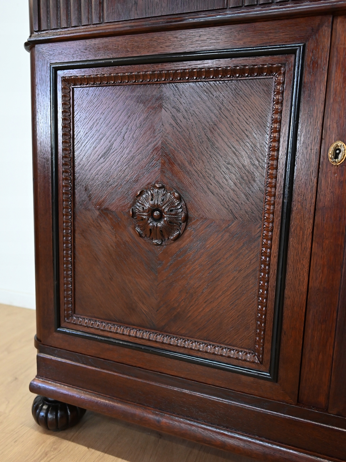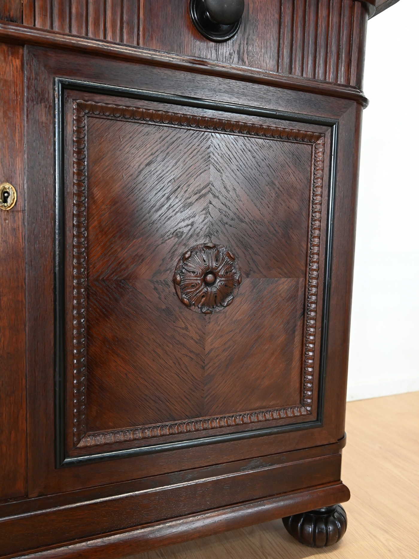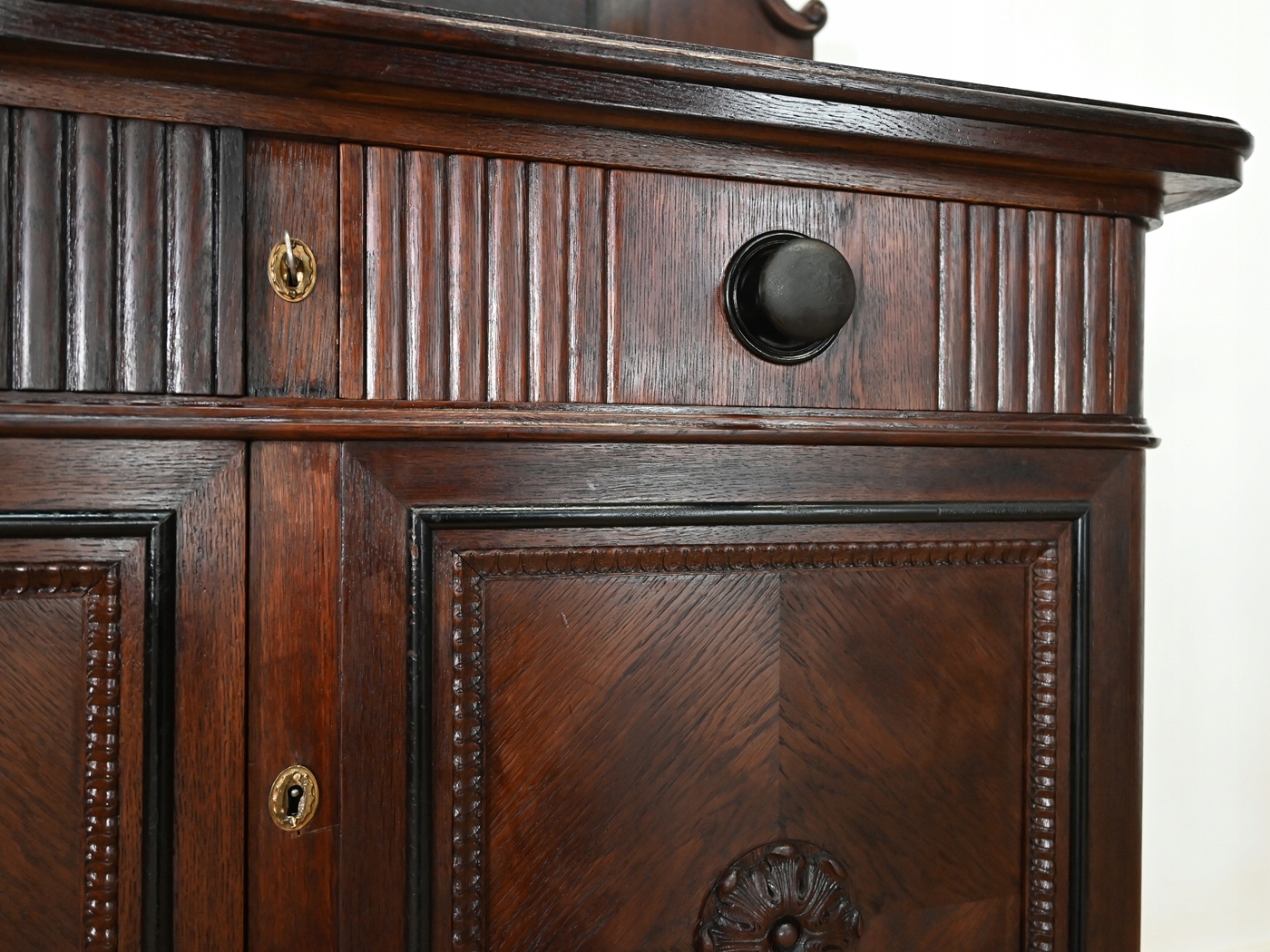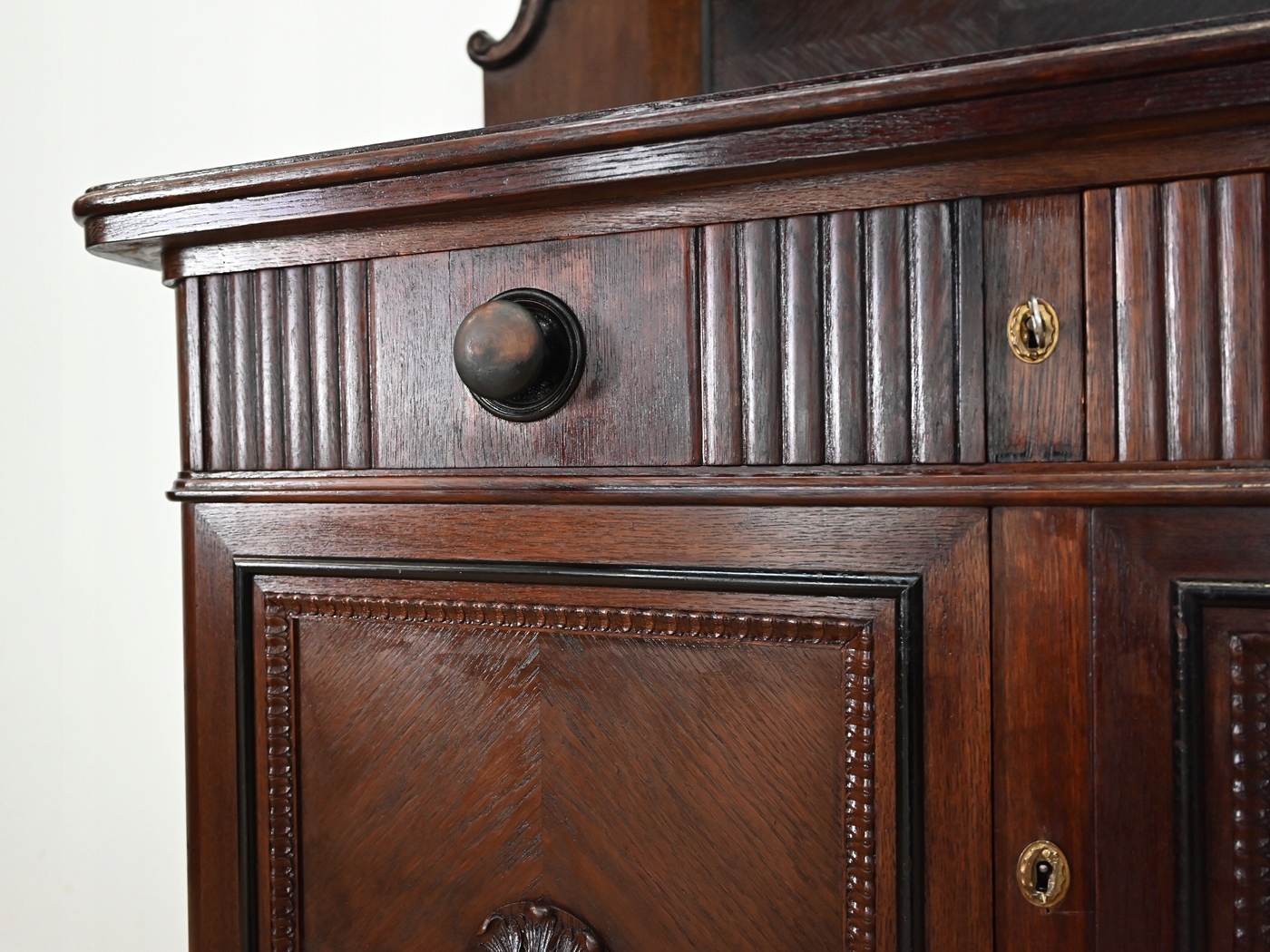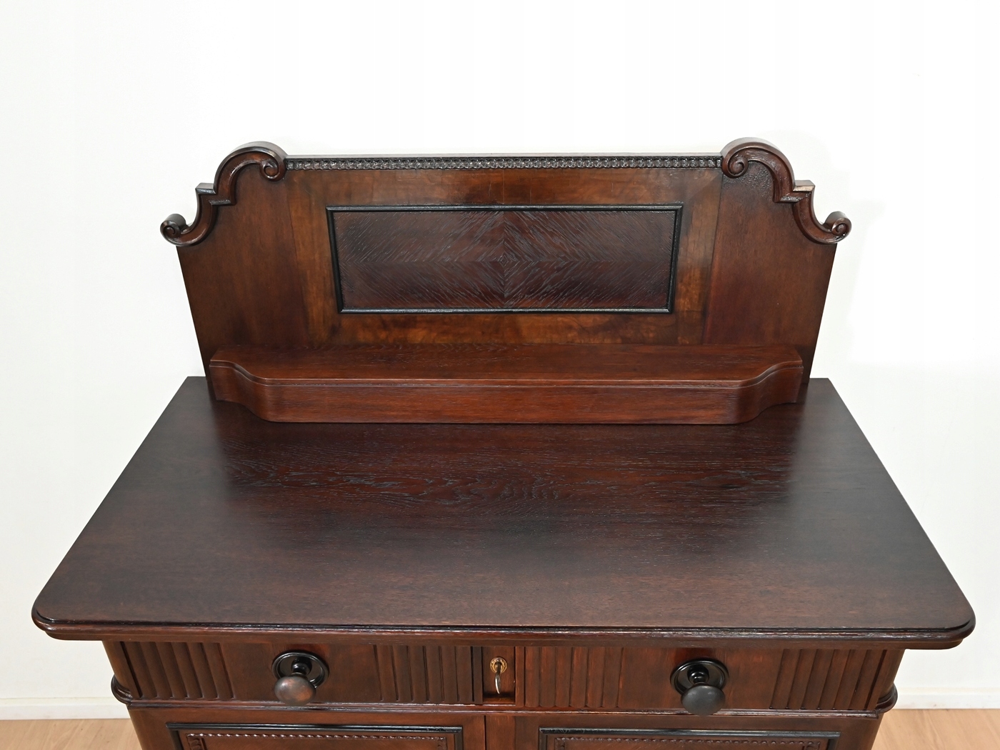 Дуже хороший стан. Меблі, підготовлені до використання. Зовнішні поверхні та центр меблів були оновлені. Меблі вже мають свої роки та сліди минулого часу, що не впливає на його естетичний прийом, вони є свідченням справжності меблів. Брудену скриню можна негайно поставити в квартиру.