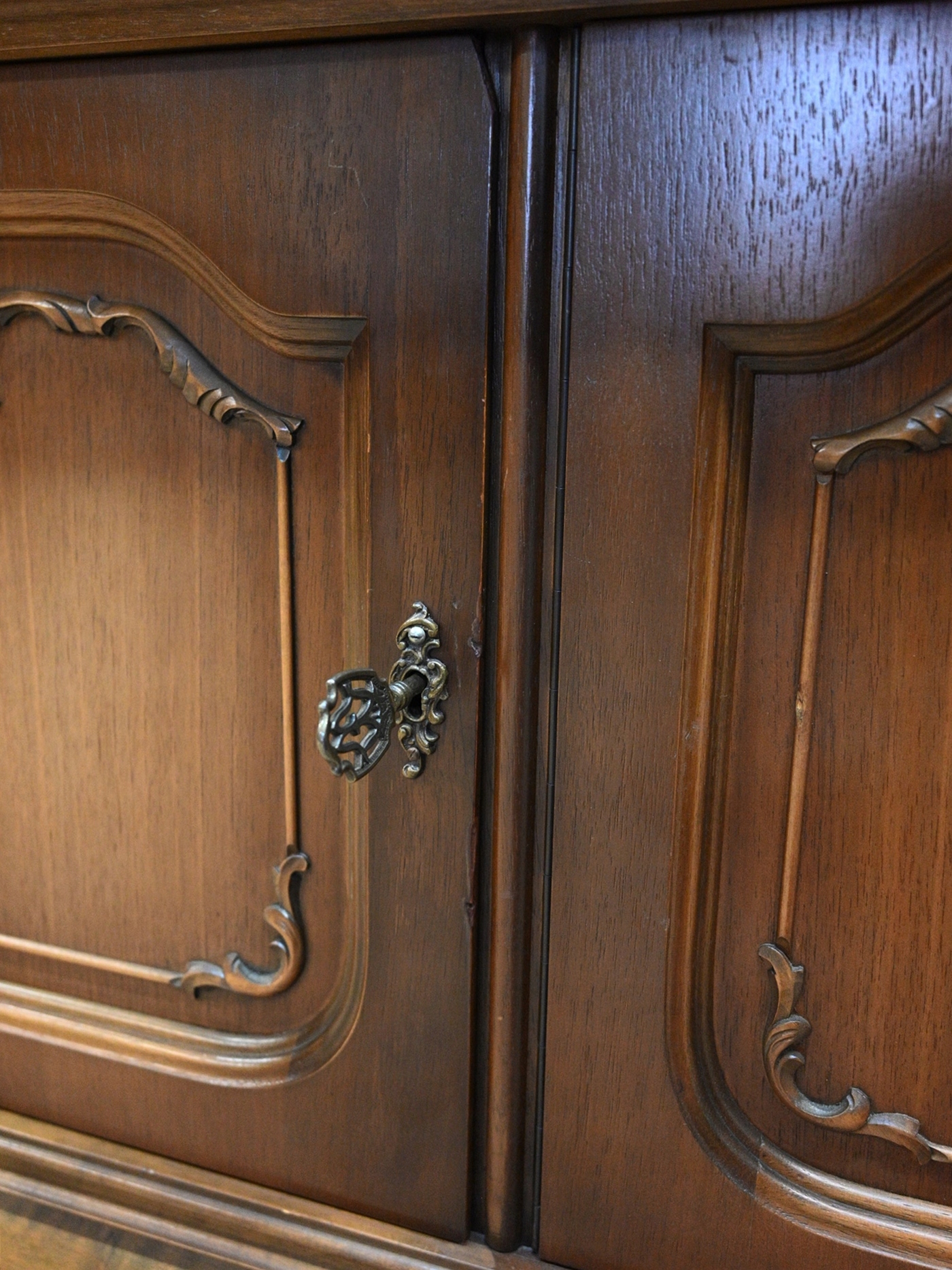 здебільшого виготовлений з дерева, горіховий шпонований.