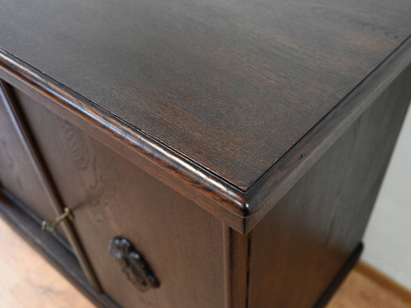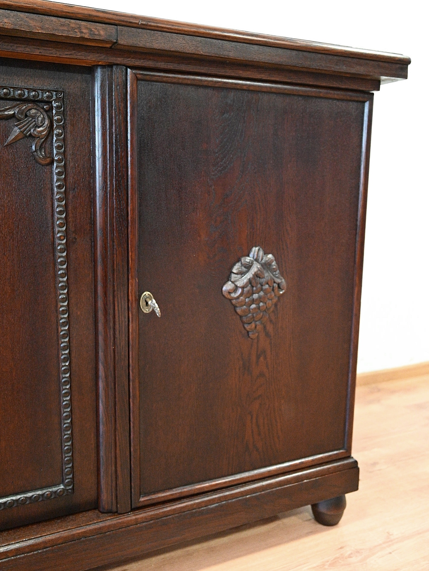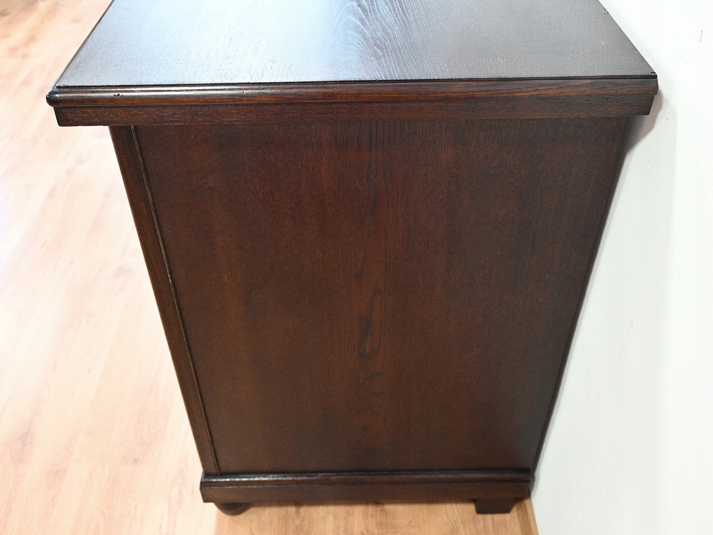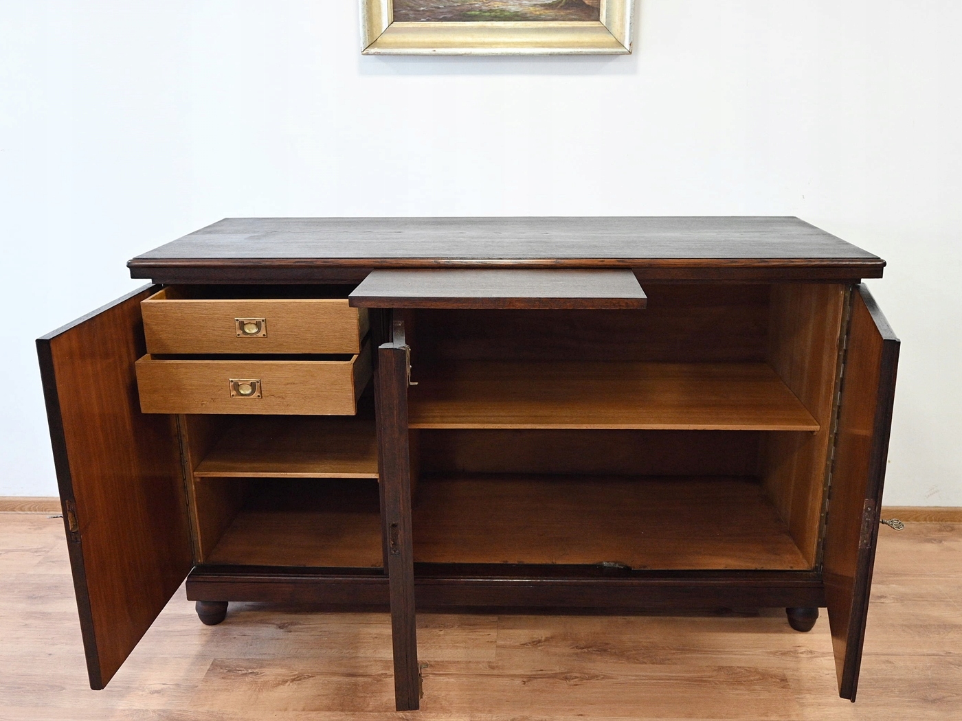 Дуже хороший стан. Меблі, підготовлені до використання. Зовнішні поверхні та центр меблів були оновлені. Меблі вже мають свої роки та сліди минулого часу, що не впливає на його естетичний прийом, вони є свідченням справжності меблів. Комод можна відразу помістити в квартиру.