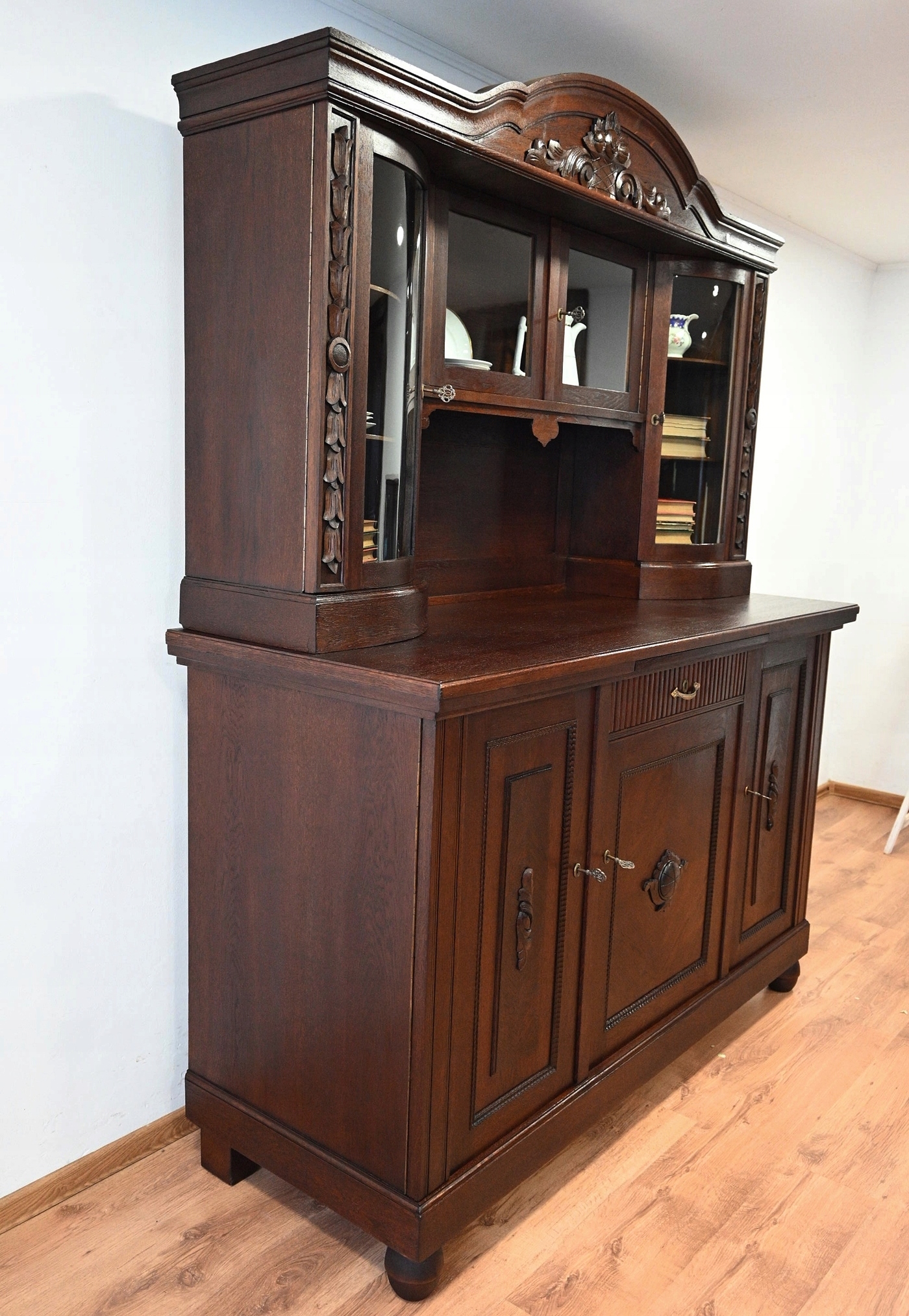 Меблі надходять з міжвоєнних років. Меблі, підготовлені до використання. Зовнішні поверхні та центр меблів були оновлені. Меблі вже мають свої роки та сліди минулого часу, що не впливає на його естетичний прийом, вони є свідченням справжності меблів. Соборд може бути поставлений у квартиру відразу. Фурнітура - латунні репліки. Меблі, просочені підготовкою проти корових жуків. Жоден активний жук. поставки). Інші форми доставки, які слід визначити перед покупкою: наш транспорт (не в усіх напрямках), можливість принесення, можливість завантаження ...
