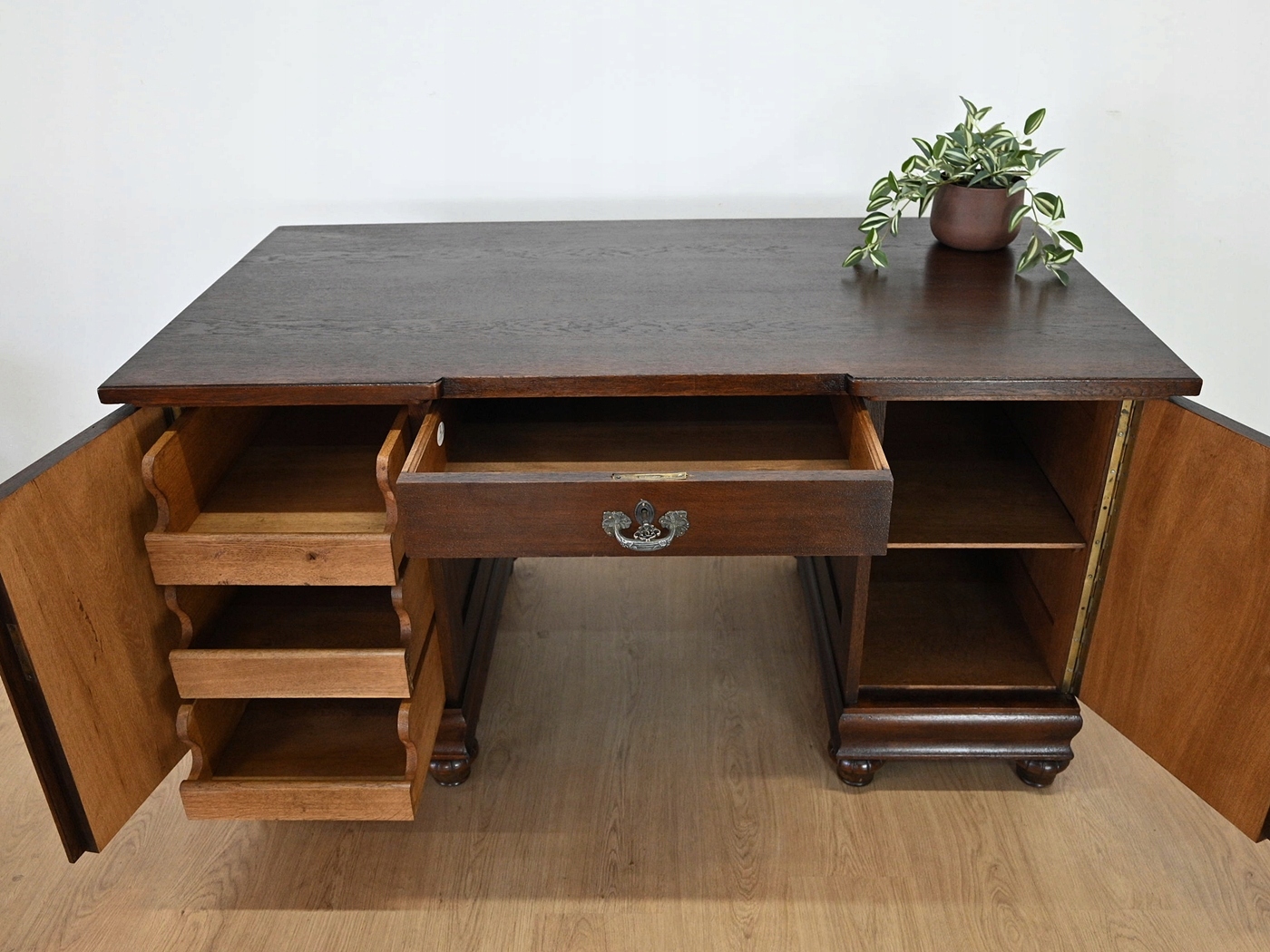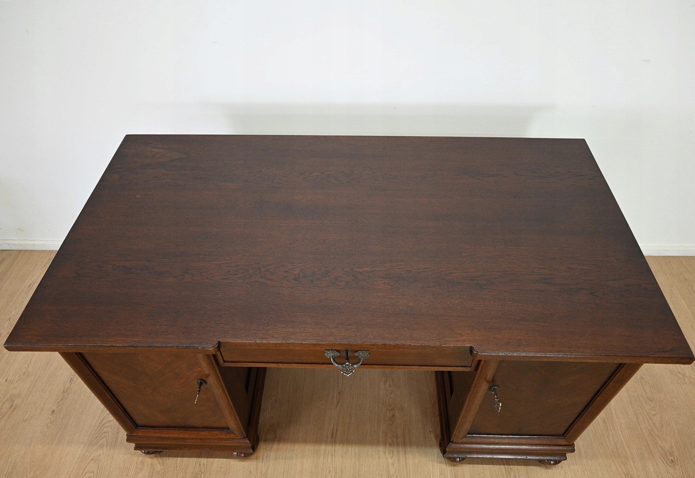Дуже хороший стан. Меблі, підготовлені до використання. Зовнішні поверхні та центр меблів були оновлені. Меблі вже мають свої роки та сліди минулого часу, що не впливає на його естетичний прийом, вони є свідченням справжності меблів. Стіл можна негайно поставити в квартиру.