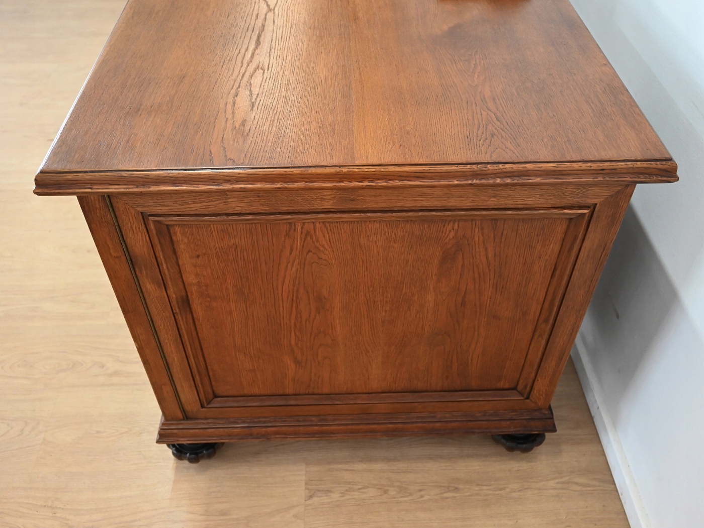 Дуже хороший стан. Меблі, підготовлені до використання. Зовнішні поверхні та центр меблів були оновлені. Меблі вже мають свої роки та сліди минулого часу, що не впливає на його естетичний прийом, вони є свідченням справжності меблів. Стіл можна відразу поставити в квартиру.