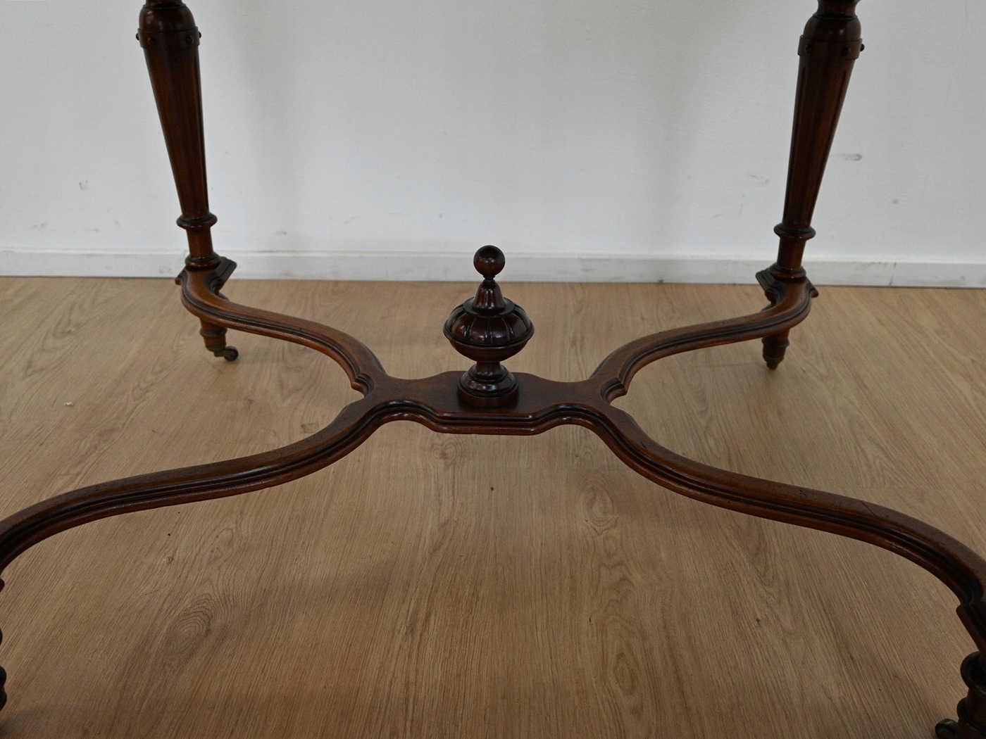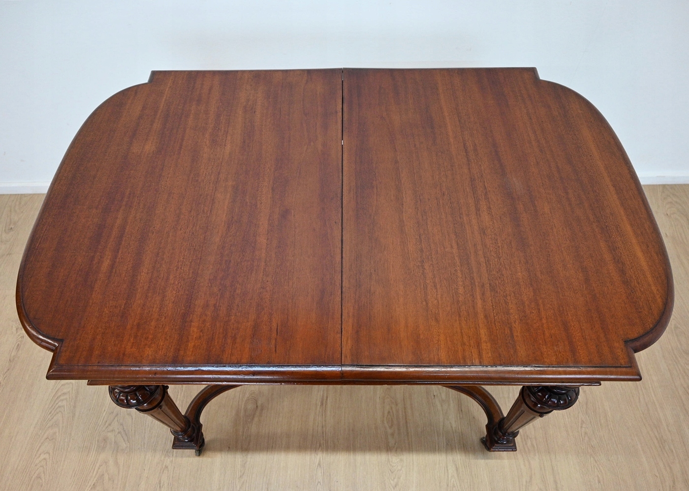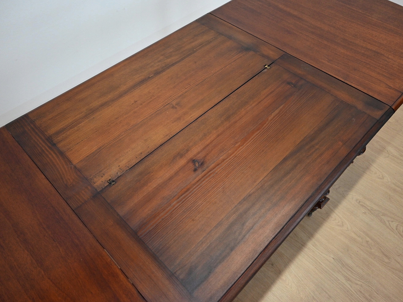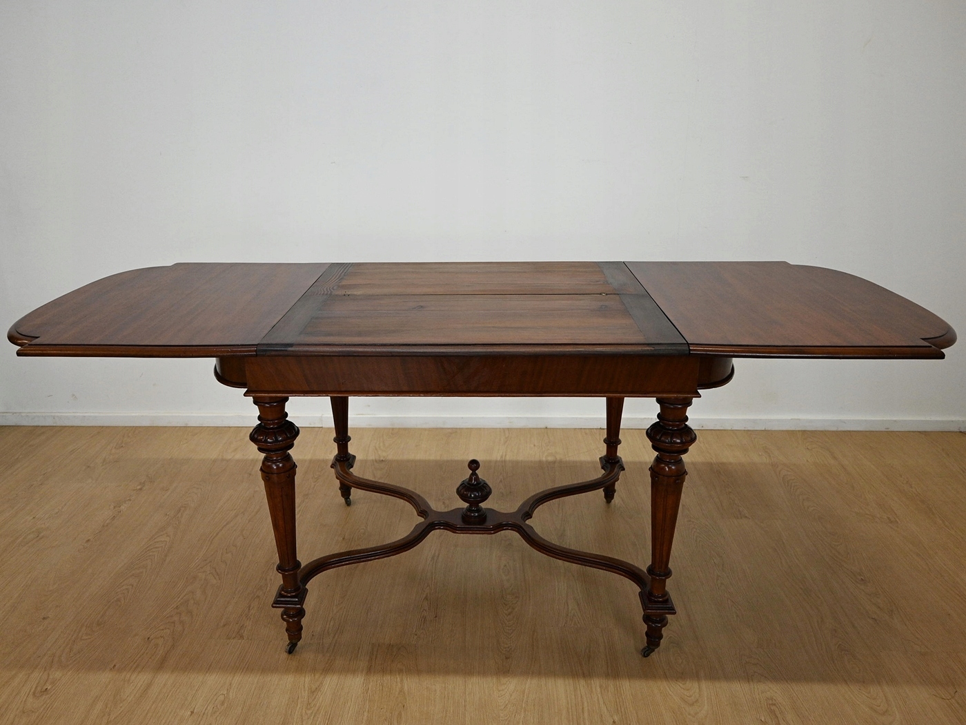 повністю виготовляються з дерева, шпонованого з Махоном. Меблі, підготовлені до використання. Зовнішні поверхні та центр меблів були оновлені. Меблі вже мають свої роки та сліди минулого часу, що не впливає на його естетичний прийом, вони є свідченням справжності меблів. Стіл можна негайно поставити в квартиру.