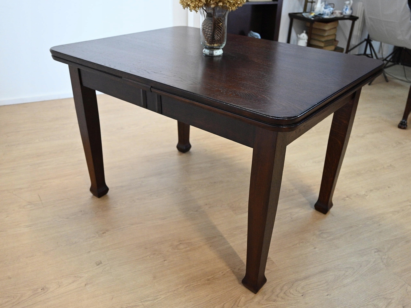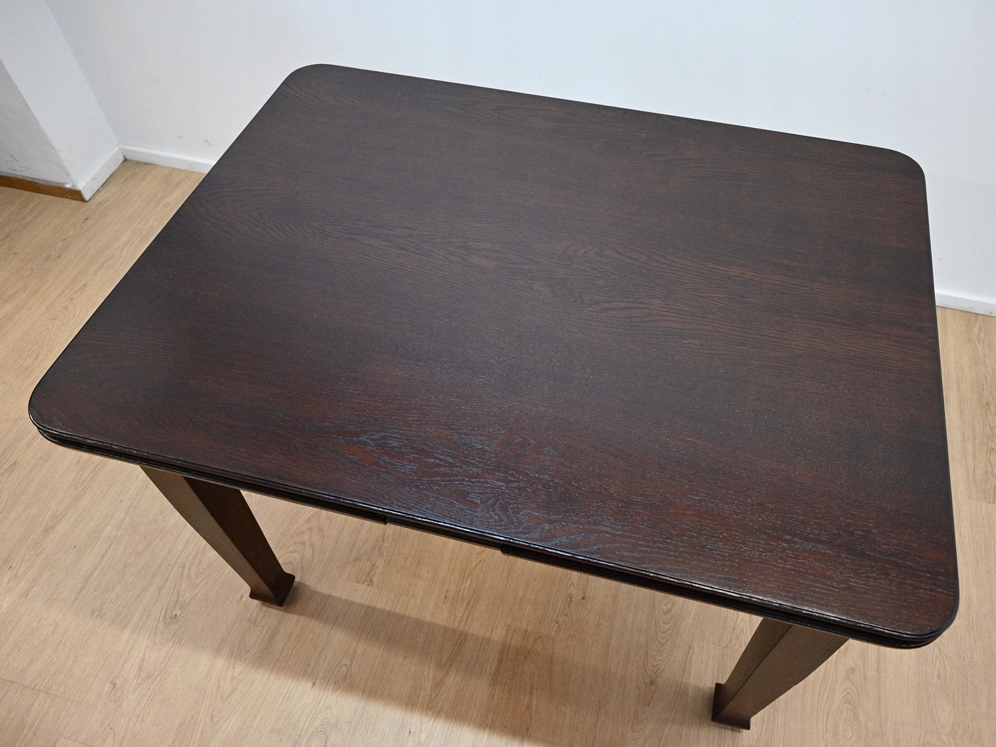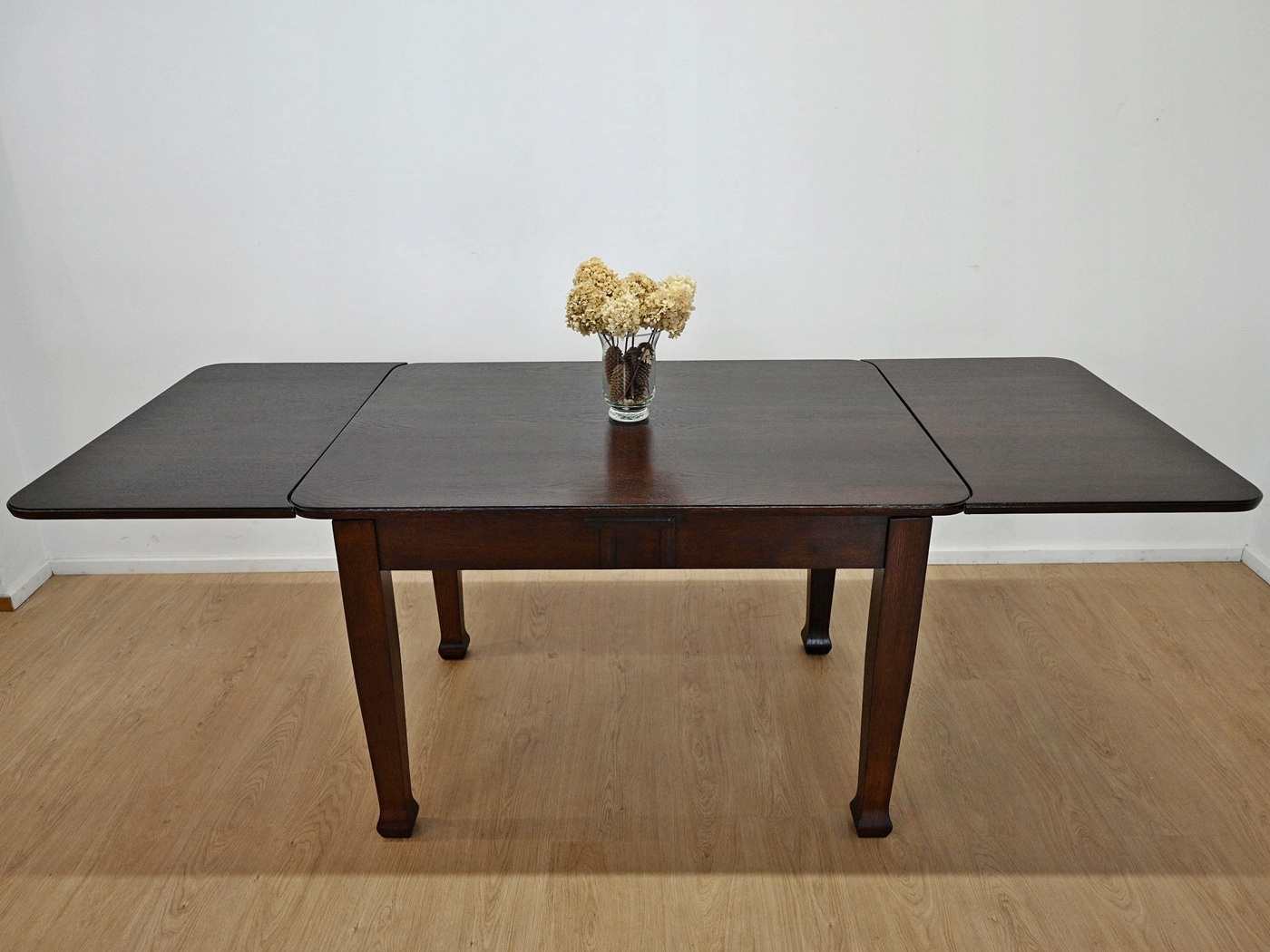 Дуже хороший стан. Меблі, підготовлені до використання. Зовнішні поверхні та центр меблів були оновлені. Меблі вже мають свої роки та сліди минулого часу, що не впливає на його естетичний прийом, вони є свідченням справжності меблів. Стіл можна негайно поставити в квартиру.