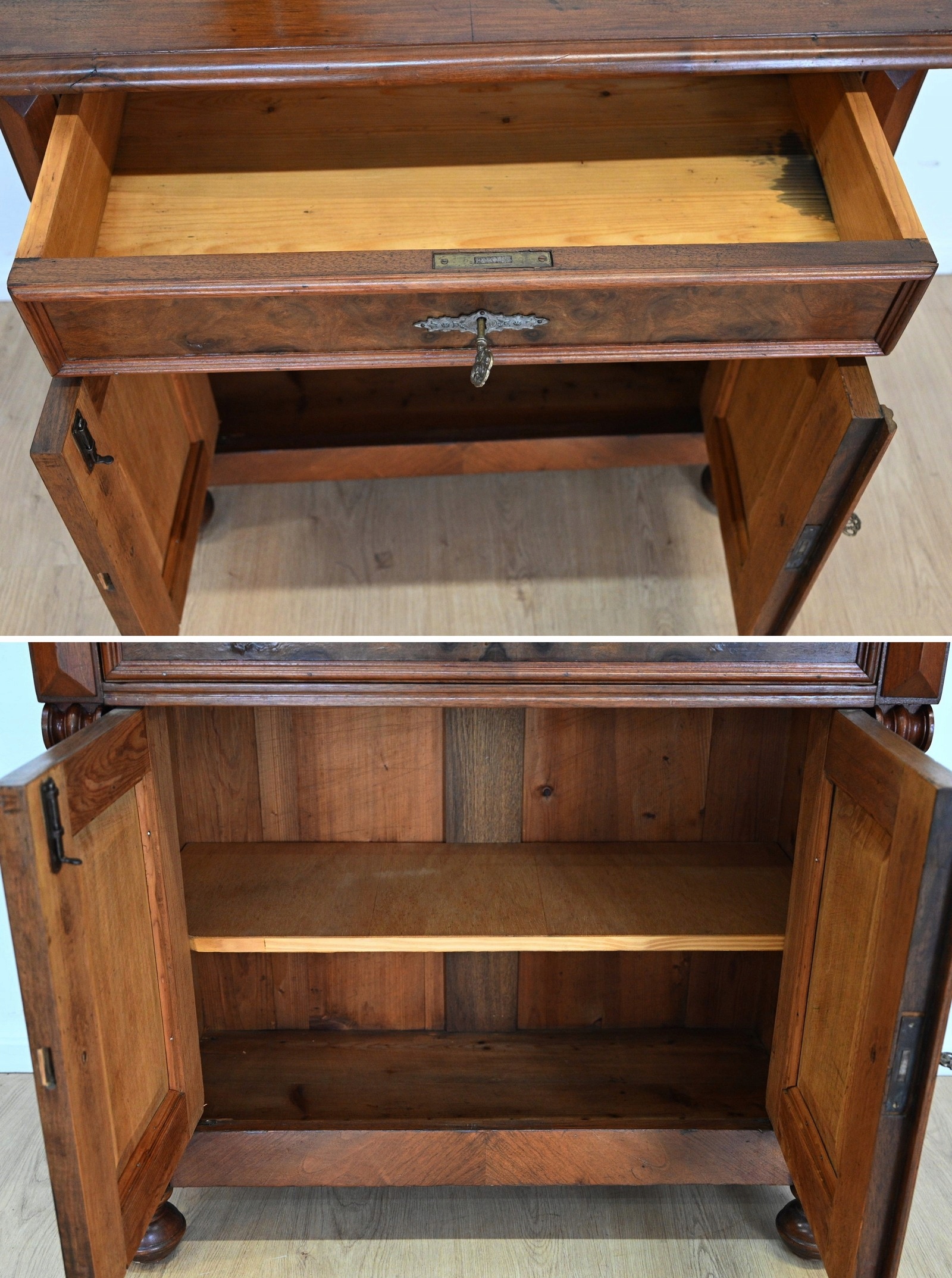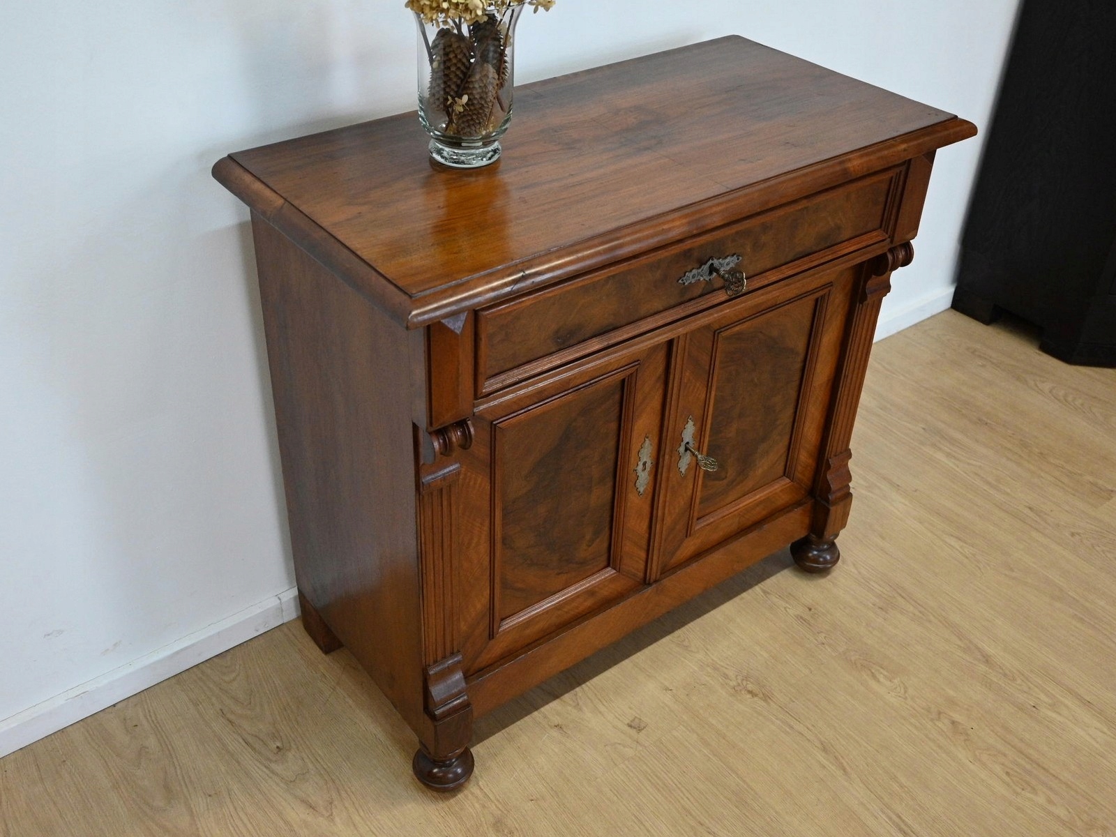 хороший стан. Меблі, підготовлені до використання. Зовнішні поверхні та центр меблів були оновлені. Меблі вже мають свої роки та сліди минулого часу, що не впливає на його естетичний прийом, вони є свідченням справжності меблів. Кабінет може бути поставлений у квартиру відразу.