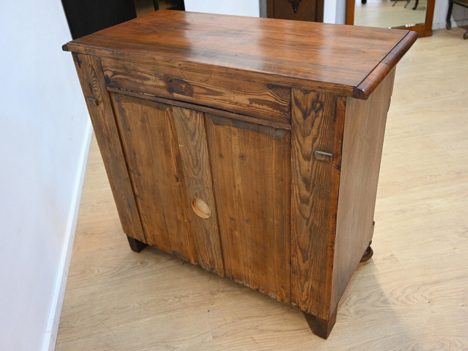 сліди кори жуків, ззаду, дно. Меблі, просочені підготовкою проти корових жуків. Немає активного кори жуть.