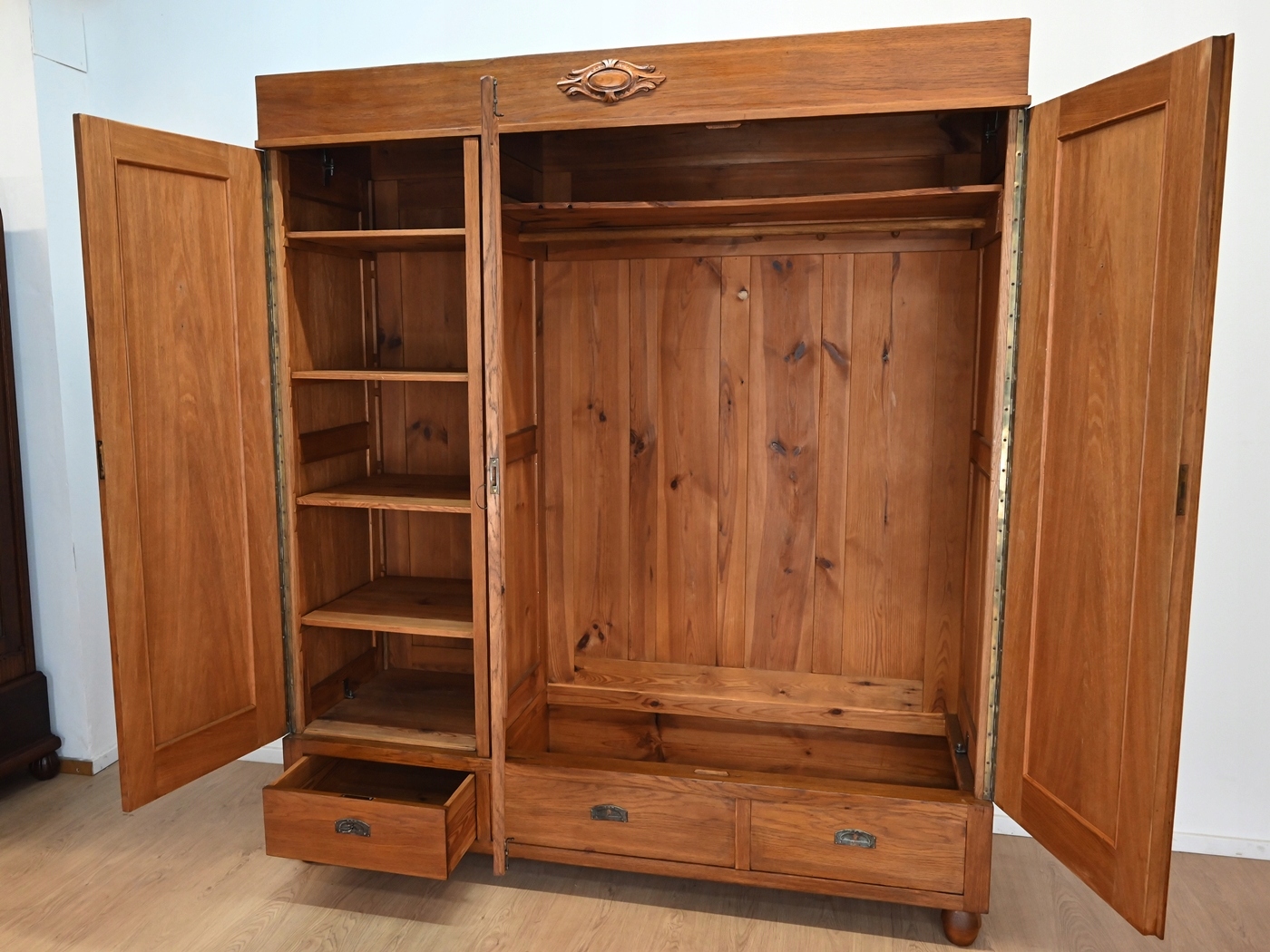 Дуже хороший стан. Меблі готові до використання. Оновлено зовнішні поверхні та інтер’єр меблів. Меблі вже старі, а сліди минулого, які не впливають на їх естетичне сприйняття, є доказом автентичності меблів. Шафа можна відразу розмістити в квартирі.