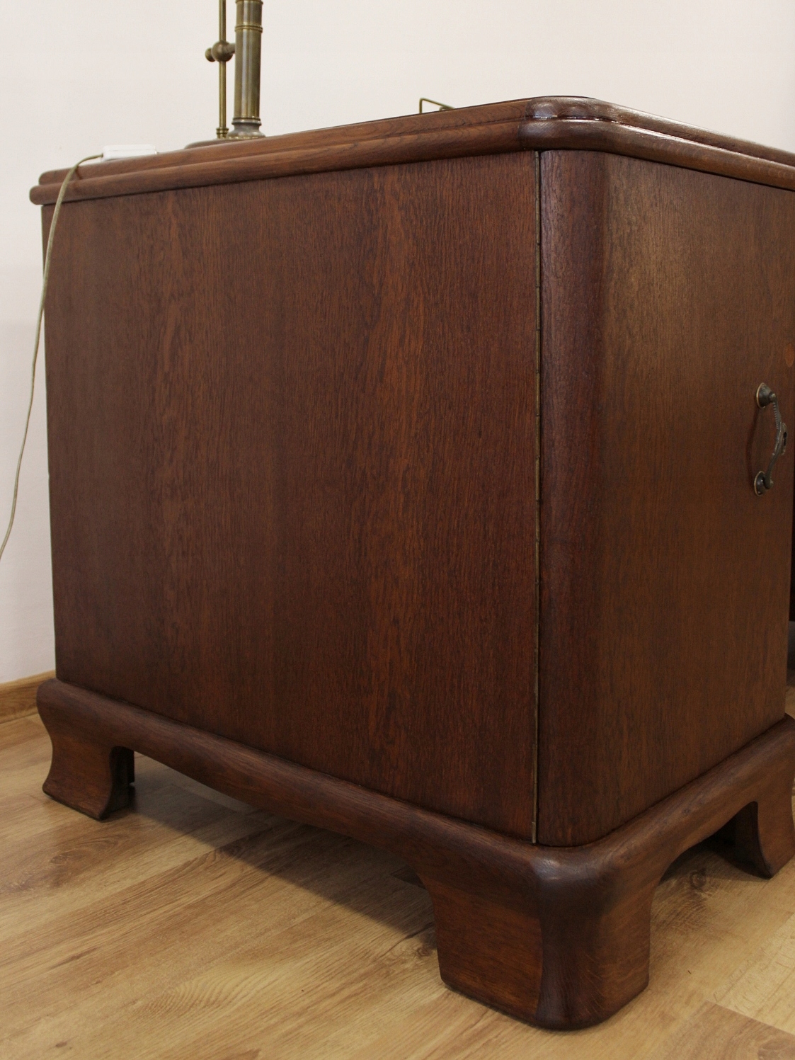 Дуже хороший стан. Меблі готові до використання. Оновлено зовнішні поверхні та інтер’єр меблів. Меблі вже старі, а сліди минулого, які не впливають на їх естетичне сприйняття, є доказом автентичності меблів. Стіл можна відразу поставити в квартиру.
