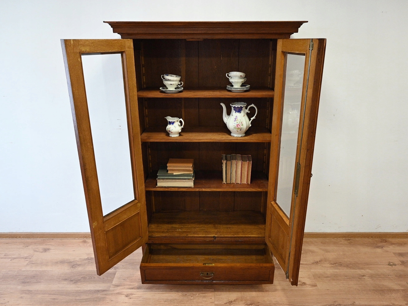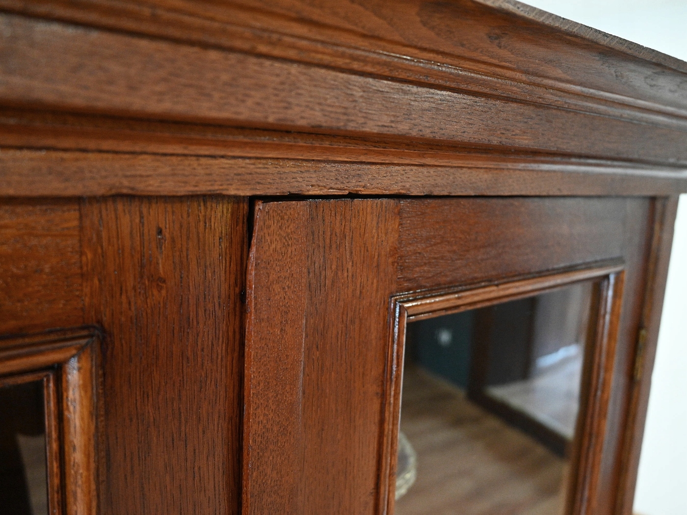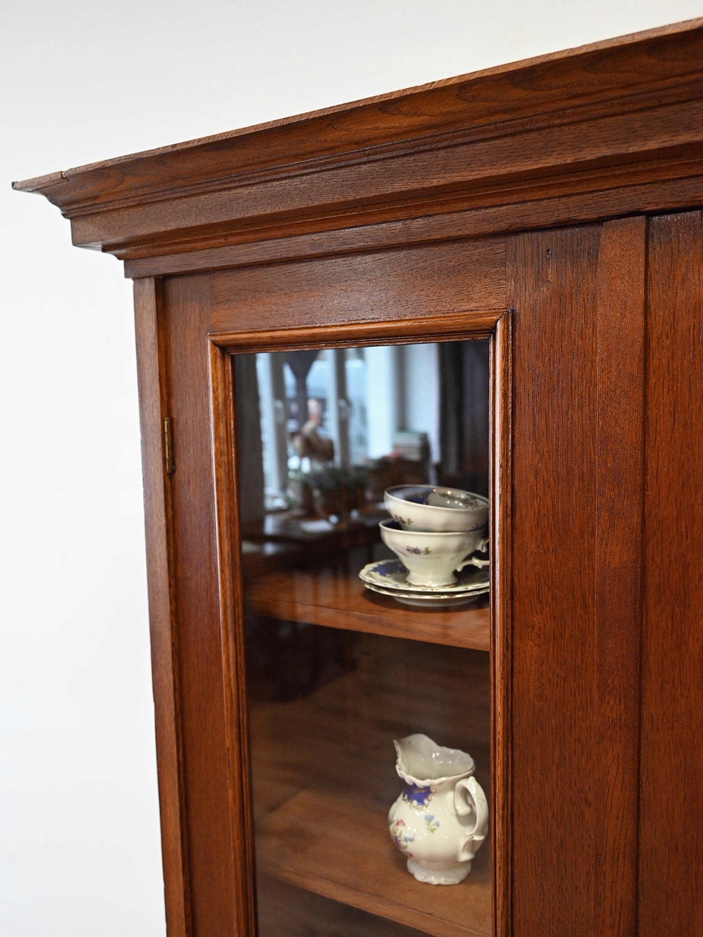 повністю виготовляється з дерева, дуба. Меблі, підготовлені до використання. Зовнішні поверхні та центр меблів були оновлені. Меблі вже мають свої роки та сліди минулого часу, що не впливає на його естетичний прийом, вони є свідченням справжності меблів. Сайт можна негайно поставити в квартиру.