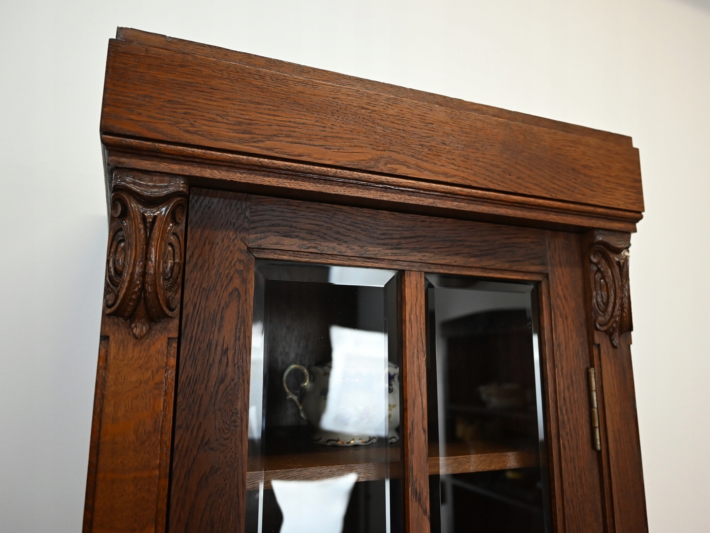 Дуже хороший стан. Меблі готові до використання. Оновлено зовнішні поверхні та інтер’єр меблів. Меблі вже старі, а сліди минулого, які не впливають на їх естетичне сприйняття, є доказом автентичності меблів. Вітрину можна відразу поставити в квартиру.
