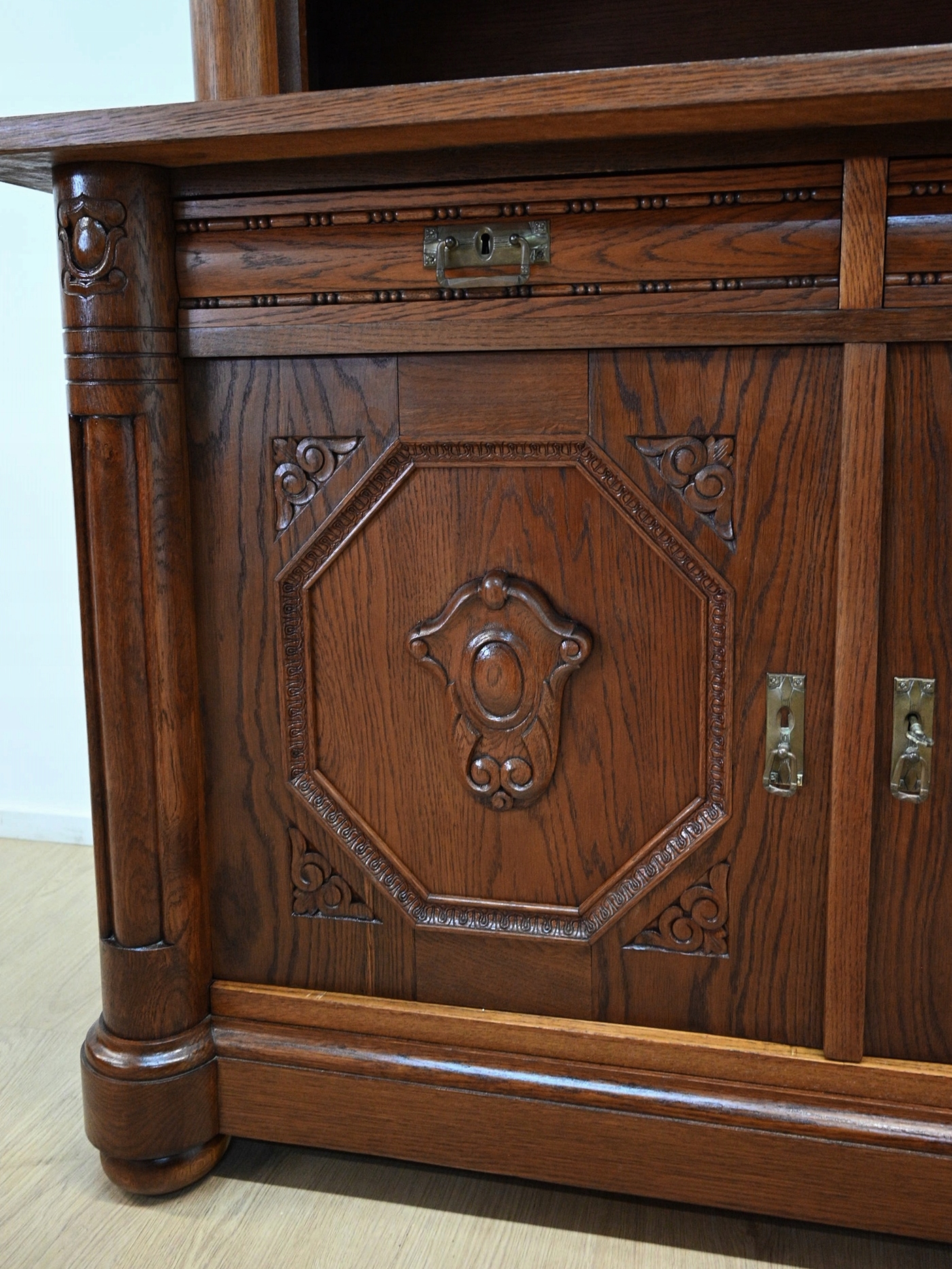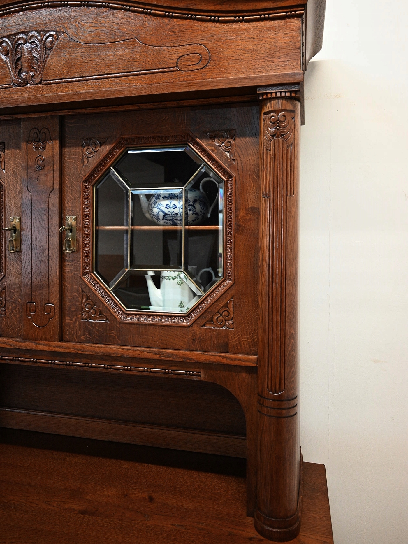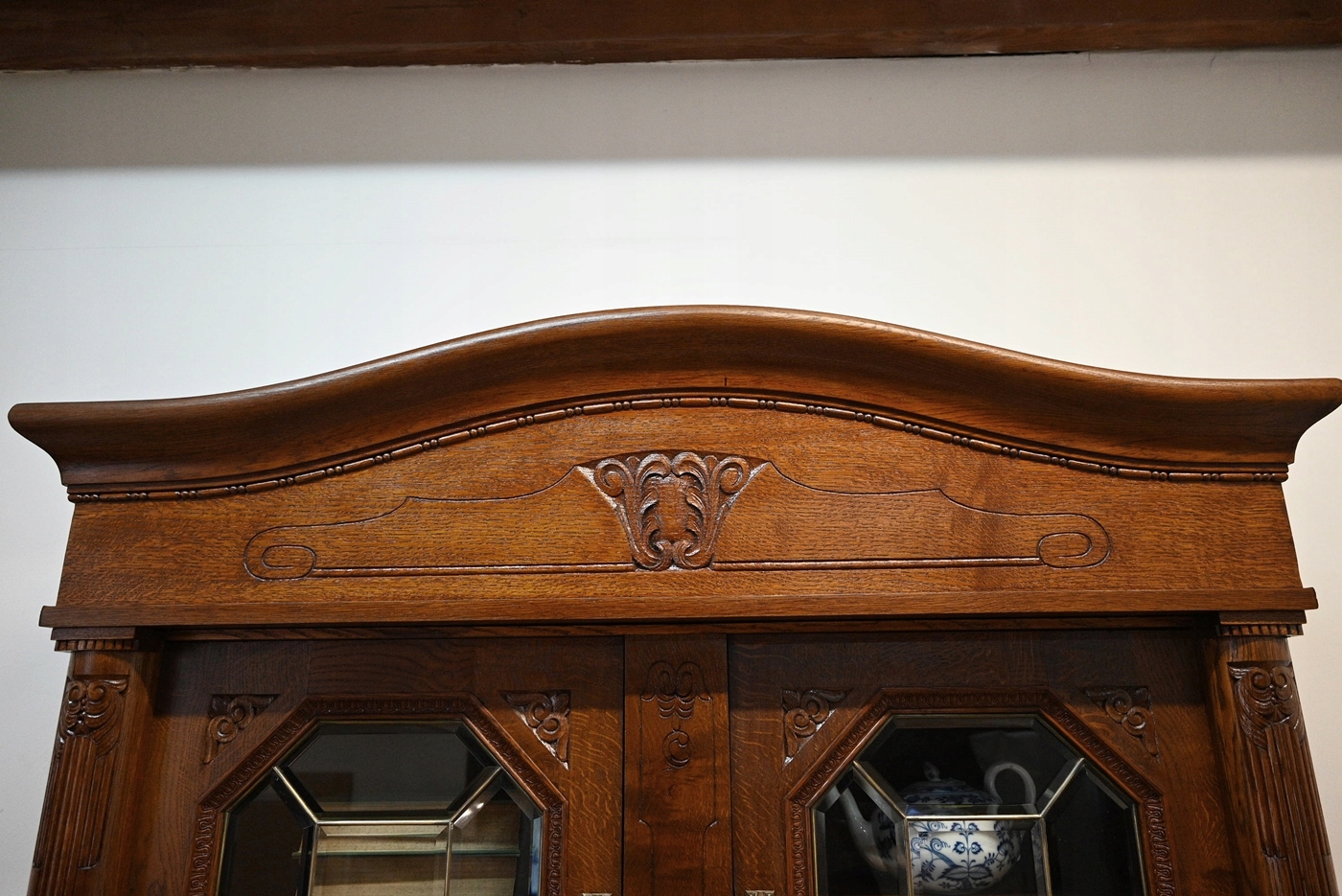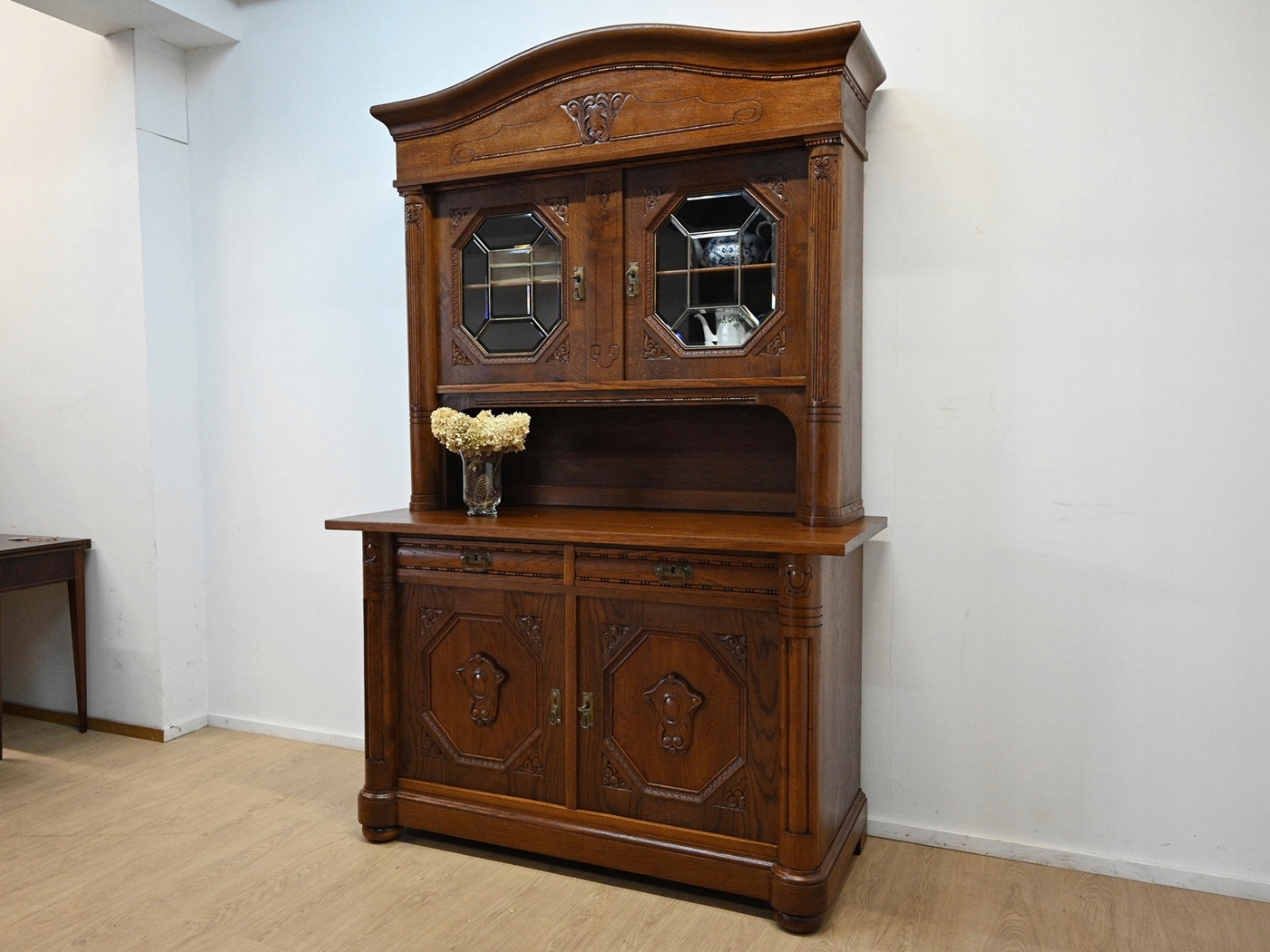 Антикварні меблі з модерну високий антикварний дубовий сервант