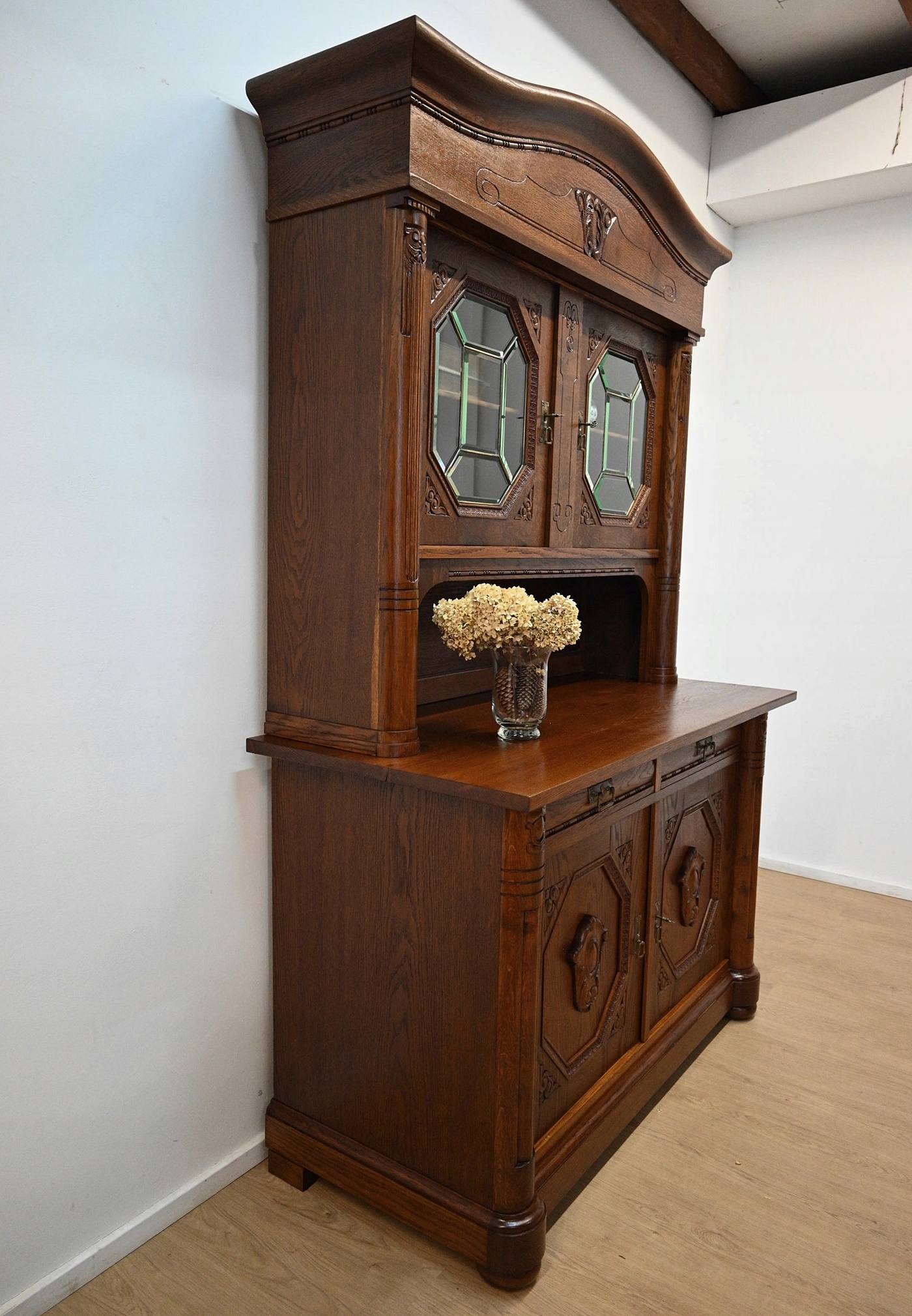 повністю з дерева, переважно з твердого дуба. Мат. Меблі, підготовлені до використання. Зовнішні поверхні та центр меблів були оновлені. Меблі вже мають свої роки та сліди минулого часу, що не впливає на його естетичний прийом, вони є свідченням справжності меблів. Соборд можна негайно поставити в квартиру. Оригінальна фурнітура. Меблі, просочені підготовкою проти корових жуків. Немає активної кори Жука. Спеціалізована компанія з транспортування меблів, PLN 400. Запитайте та визначте можливість та деталі нашого транспорту - можливість ще дешевшого групового транспорту. ВПРАВЛЕННЯ ВПРАВЛЕННЯ. Варіант завантаження.