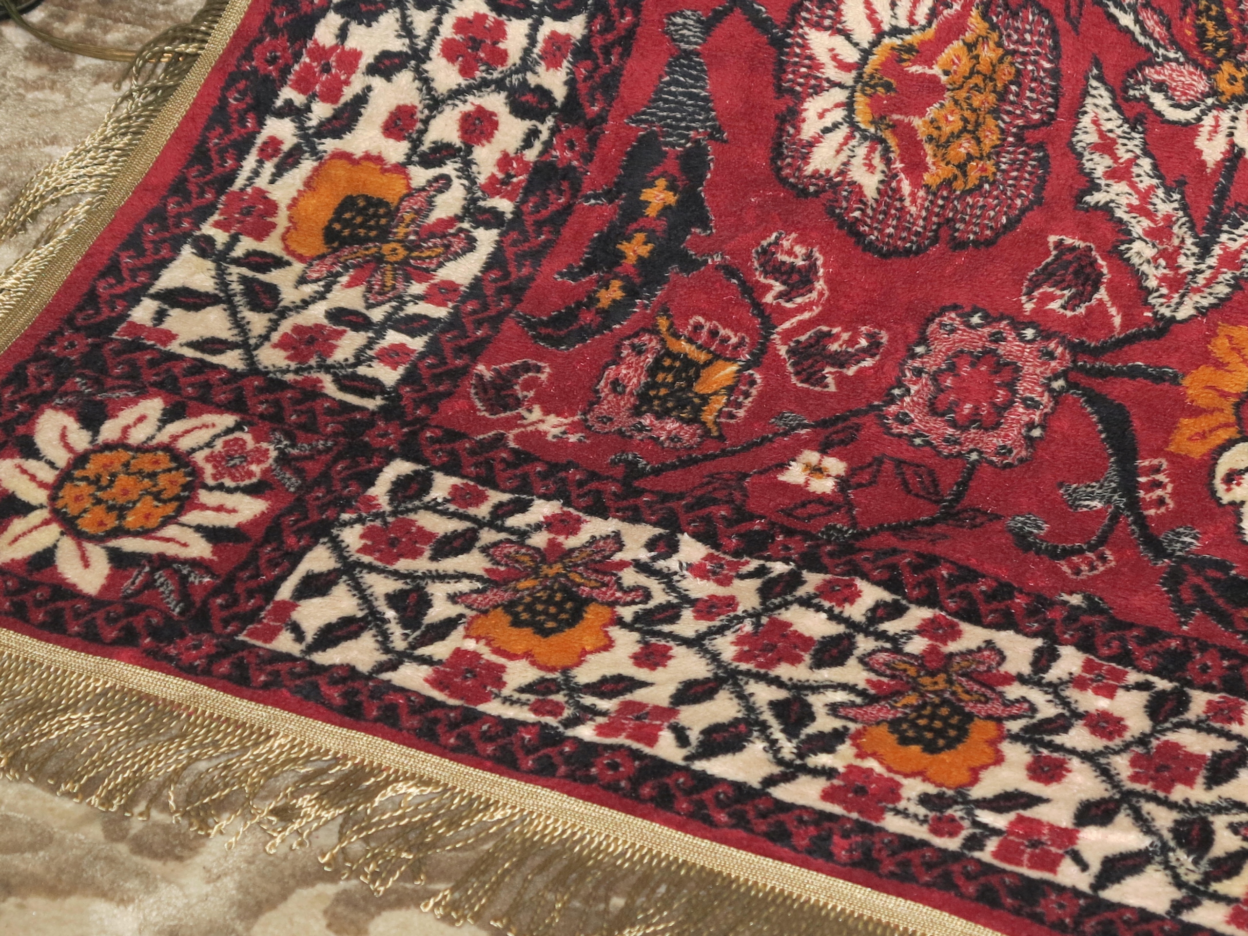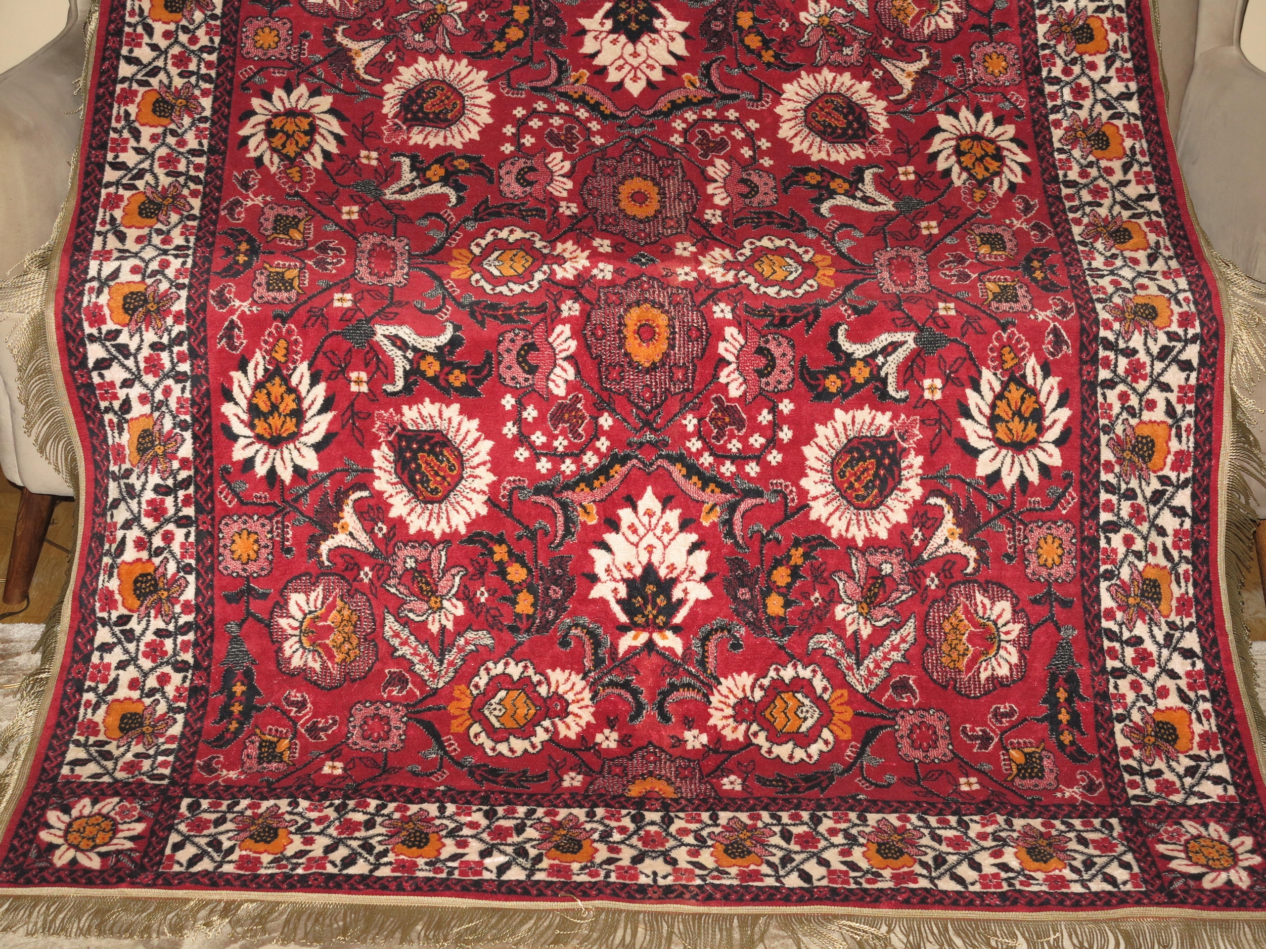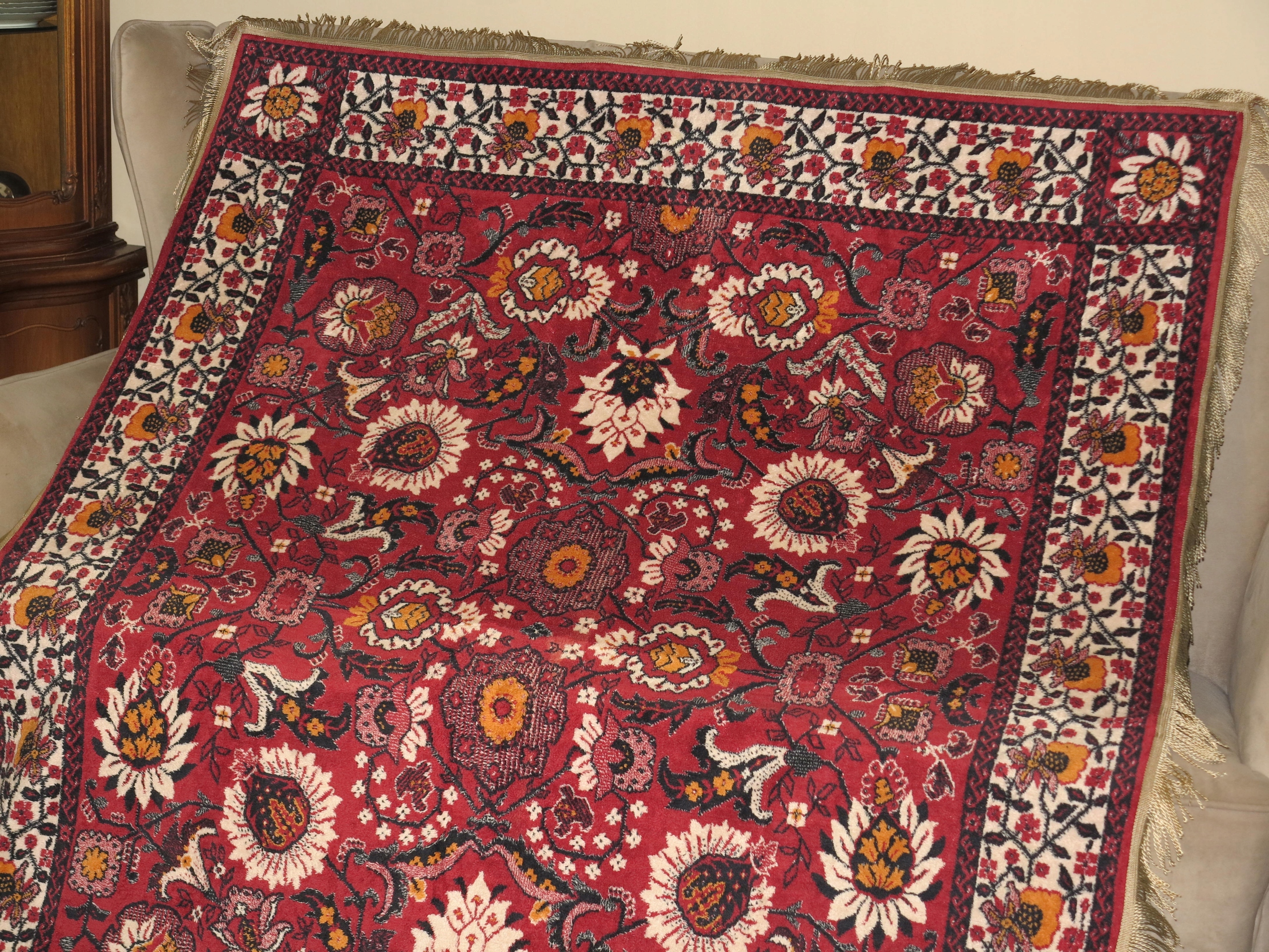 Тема аукціону - це антикварна, стильна скатертина або кілім, виготовлений з благородного бавовняного оксамиту, навколо бахроми. Скатертина має розміри: 187/145 см плюс приблизно на 7 см. Скатертина використовується в супер хорошому стані та якості, незважаючи на роки, які вона враховує. Це буде служити багато років. Я рекомендую