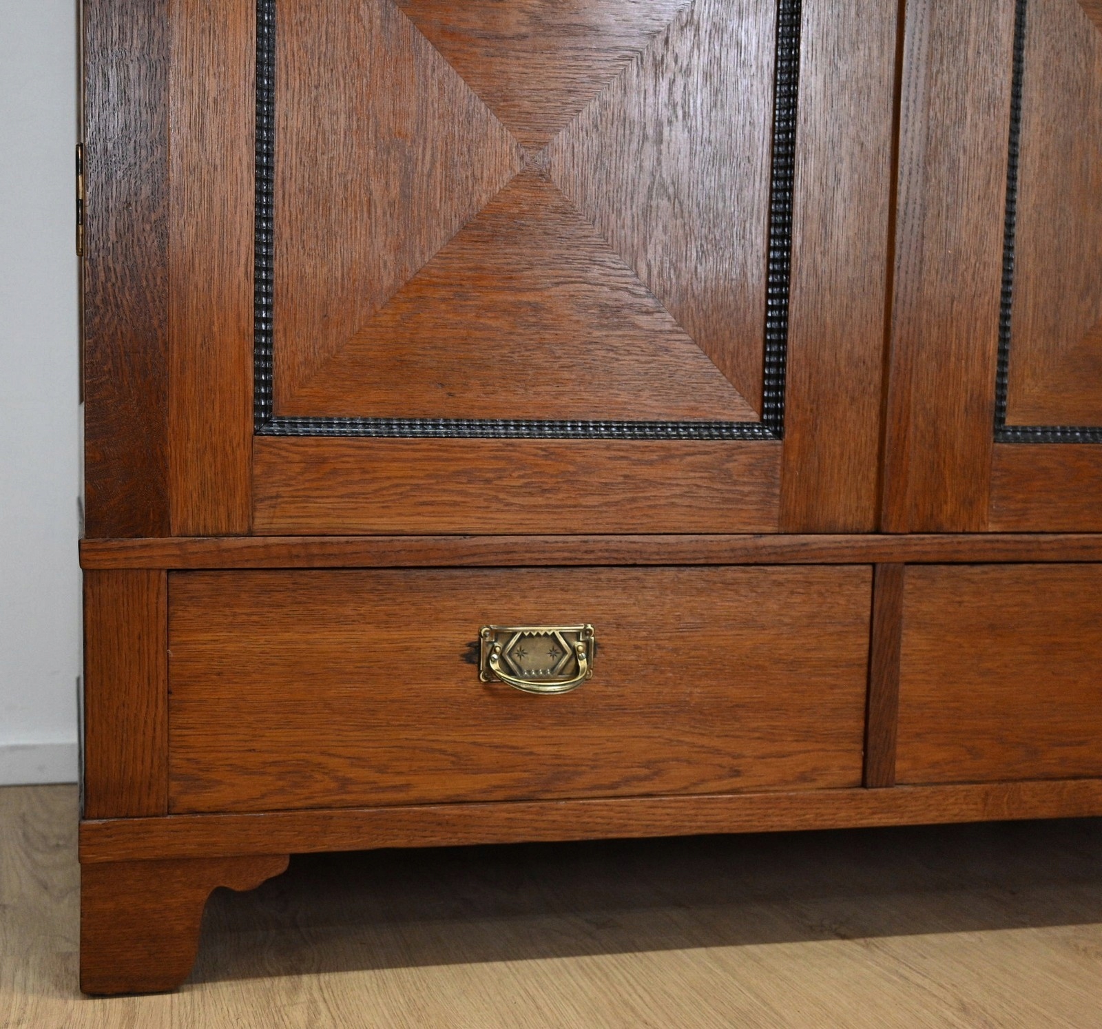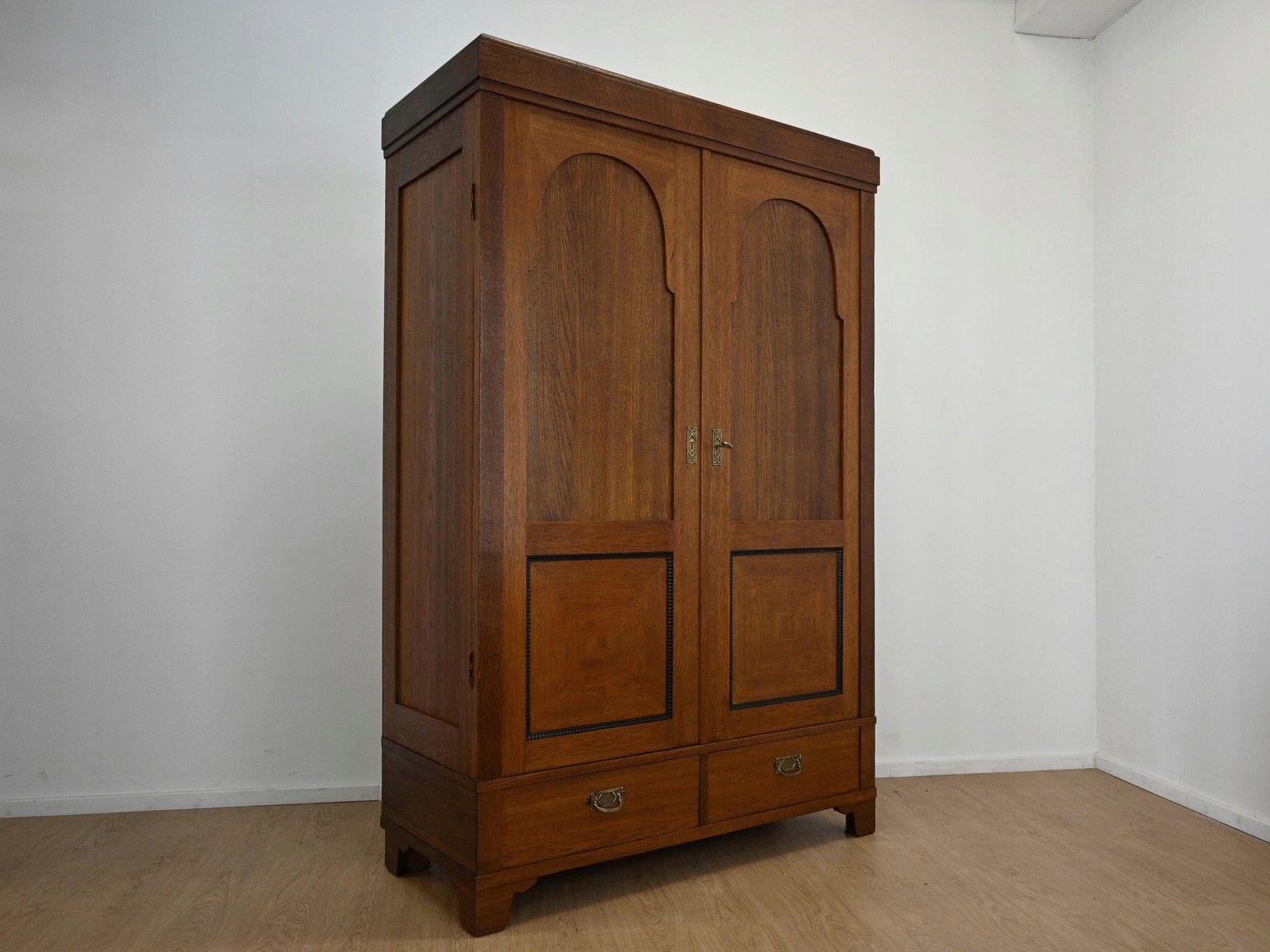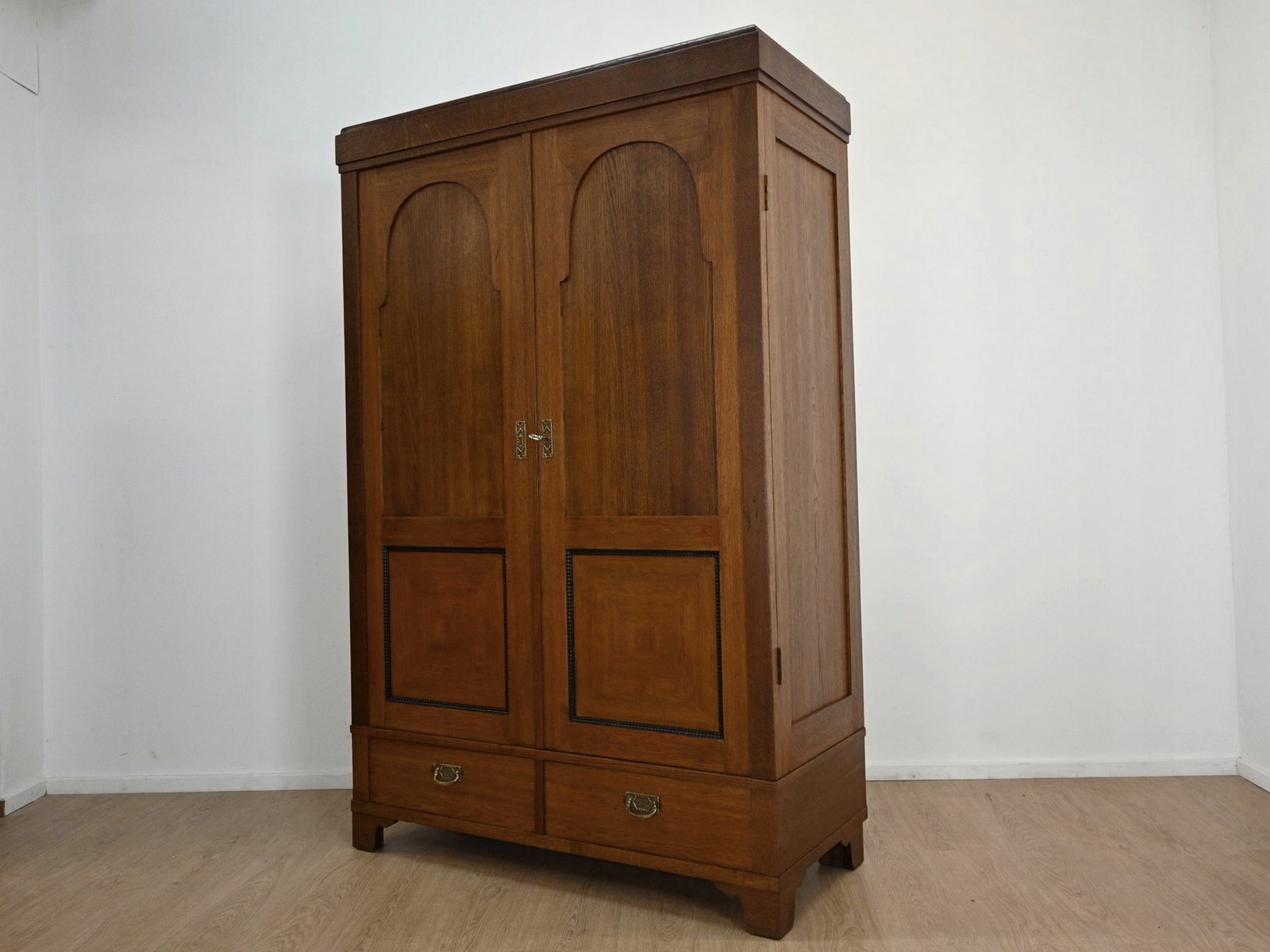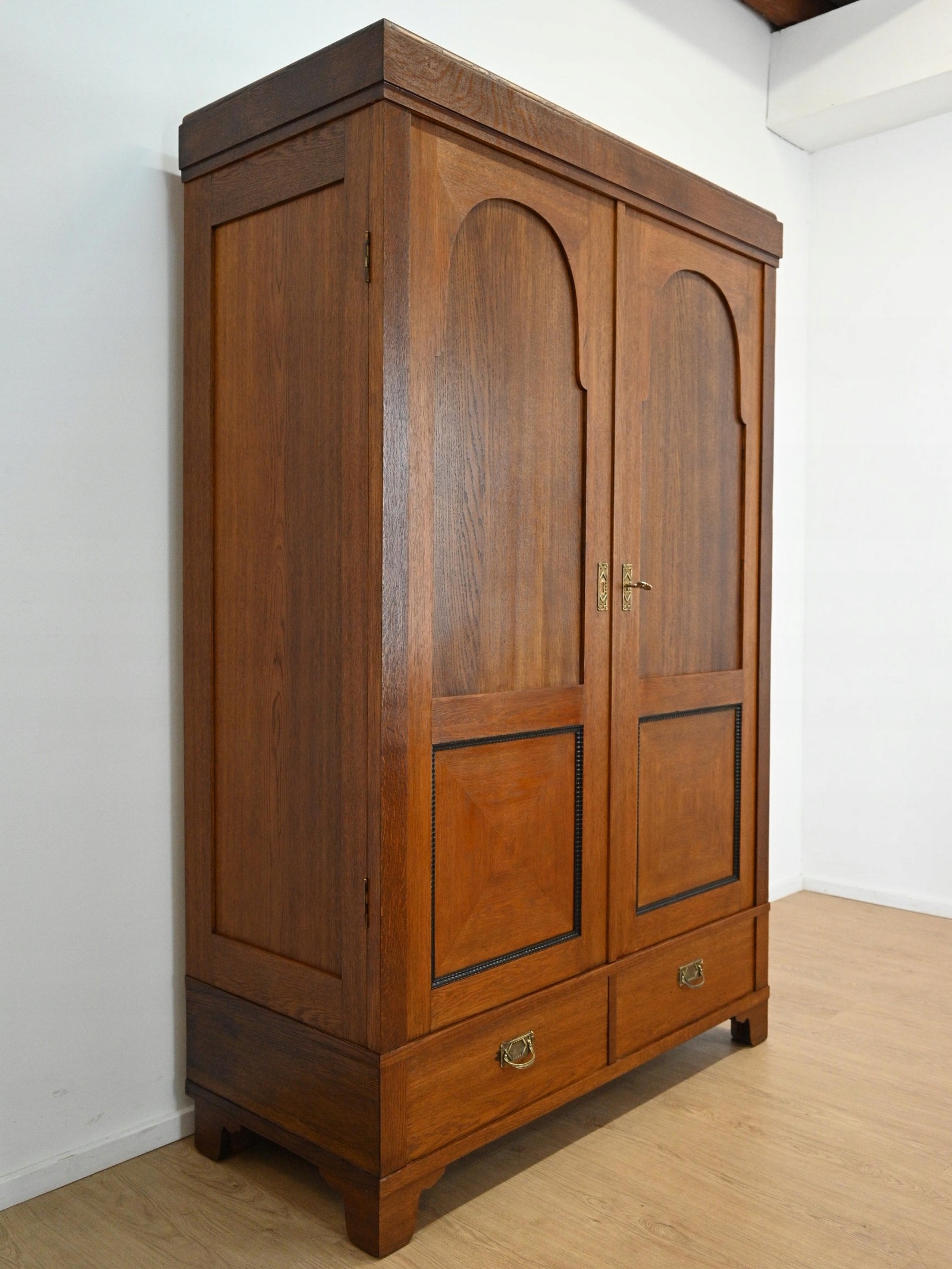 Дуже хороший стан. Меблі, підготовлені до використання. Зовнішні поверхні та центр меблів були оновлені. Меблі вже мають свої роки та сліди минулого часу, що не впливає на його естетичний прийом, вони є свідченням справжності меблів. Гардероб можна відразу помістити в квартиру.