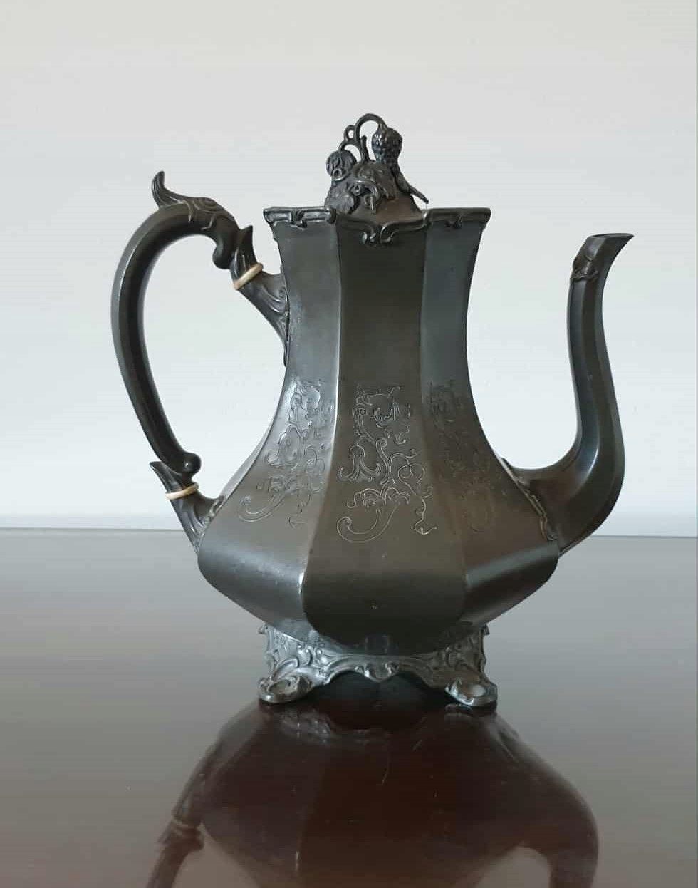 Античний декоративний глечик виробництва Shaw & Fisher, Шеффілд, Англія. Красива форма в стилі модерн і багаті тиснені рослинні орнаменти.