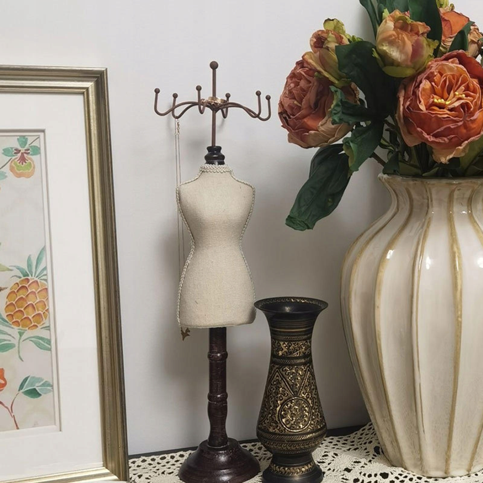 Ретро -Експозиційна стійка для манекенних ювелірних виробів, стабільної дерев’яної основи, зручна рука, елегантна та стильна, підкреслюючи красу ювелірних виробів, придатні для впливу вікон. та інші аксесуари.