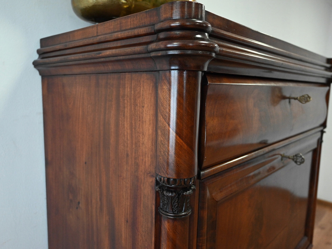 хороший стан. Меблі, підготовлені до використання. Зовнішні поверхні та центр меблів були оновлені. Меблі вже мають свої роки та сліди минулого часу, що не впливає на його естетичний прийом, вони є свідченням справжності меблів. Старій можна відразу поставити в квартиру.