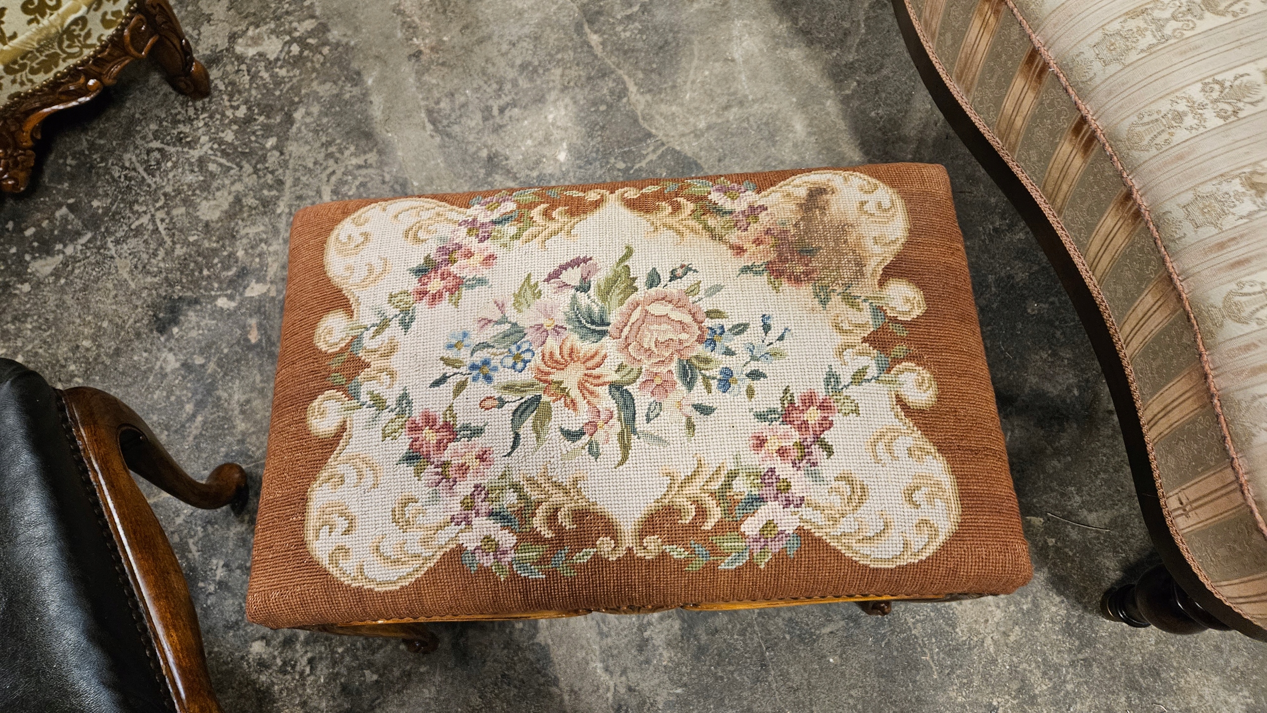 Старий прекрасний підставка, специфічний аукціон (праворуч з гобеленом)