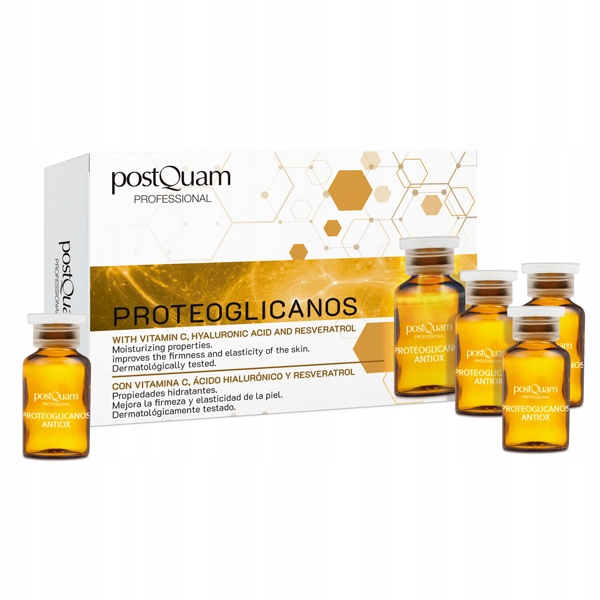 Antiox Face Ampoules - це інтенсивне лікування сухого, зрілого або життєздатності без життєвої сили, яка живить і фірми шкіри обличчя, боротьба з ознаками старіння та забезпечення додаткових зволожуючих обличчя. Протеоглікани - макромолекули, природно, присутні в шкірі як частина її структури та забезпечують стійкість та еластичність. Ці діючі інгредієнти мають здатність поглинати та зберігати велику кількість води, саме тому вони використовуються для інтенсивного зволоження шкіри та через їх фірмові властивості. Крім того, фірми гіалуронової кислоти через здатність проникати в шкіру завдяки низькій молекулярній масі. Тестування під дерматологічним контролем. зволоження.