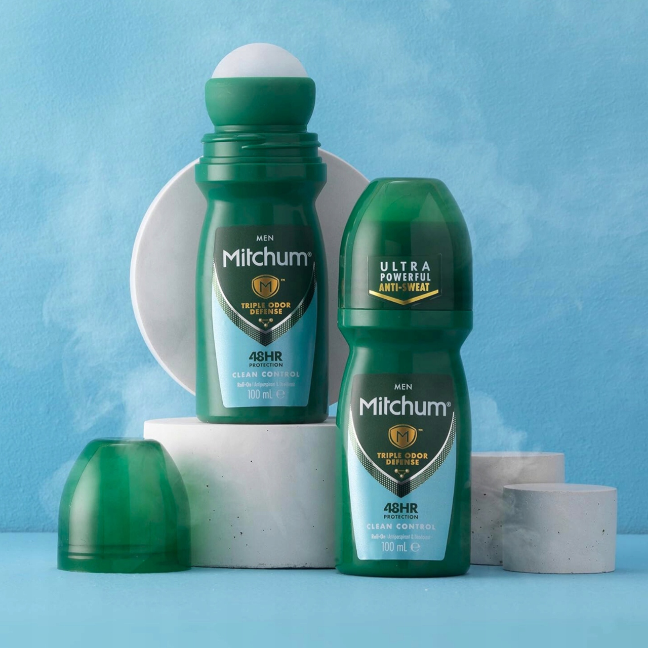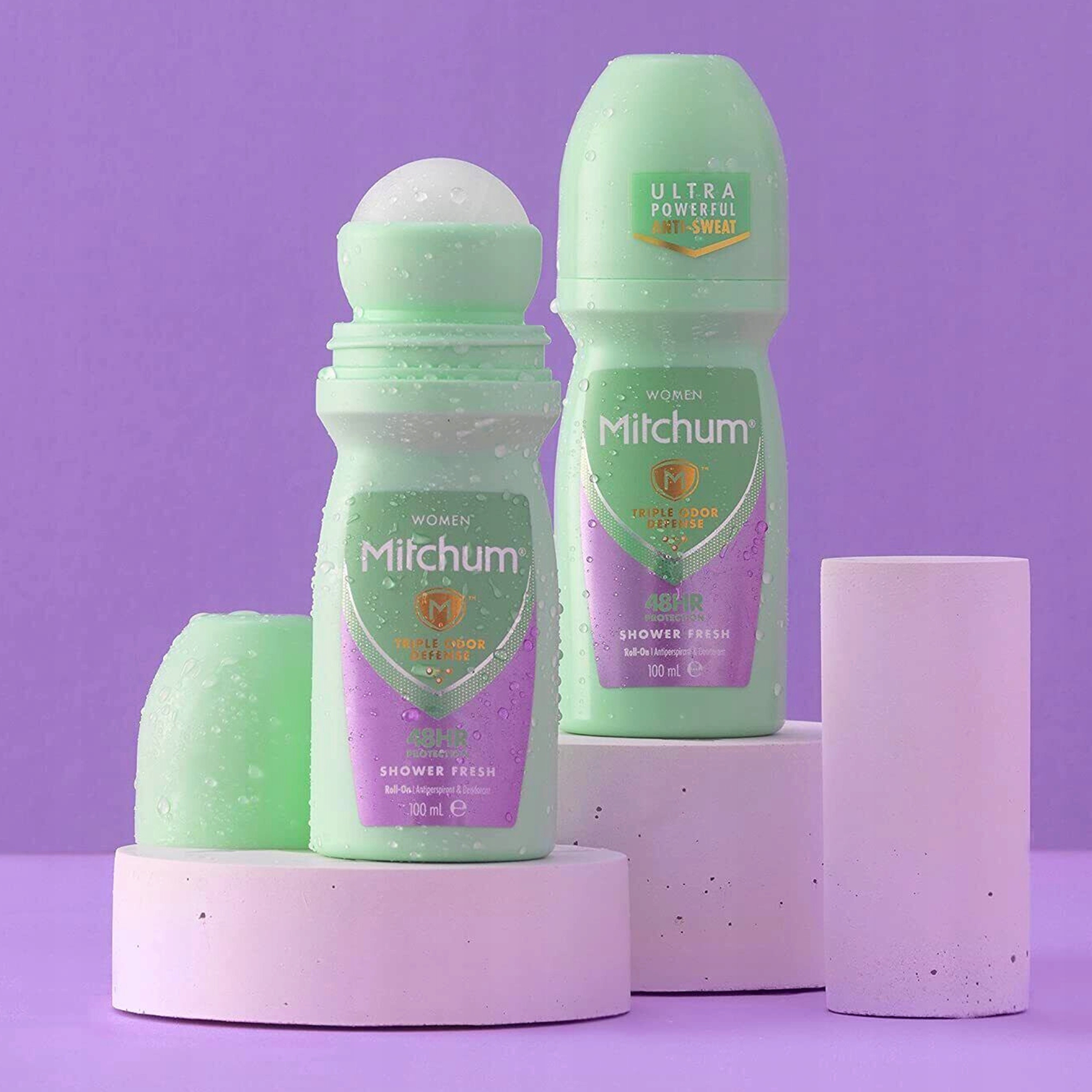 Відкрийте для себе потрійний захист від неприємних запахів з антиперспірантом Mitchum Roll-On.
