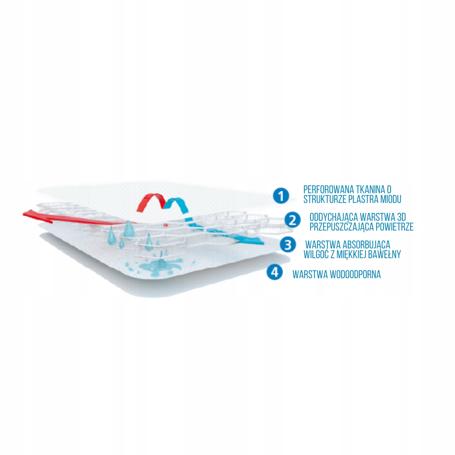 - Поглинаючий шар у поєднанні з водонепроникним шаром захисний шар запобігає зворотному витоку або потраплянню будь-якої рідини в наповнювач подушки, водночас запобігаючи утворенню бактерій і грибківа також неприємних запахів