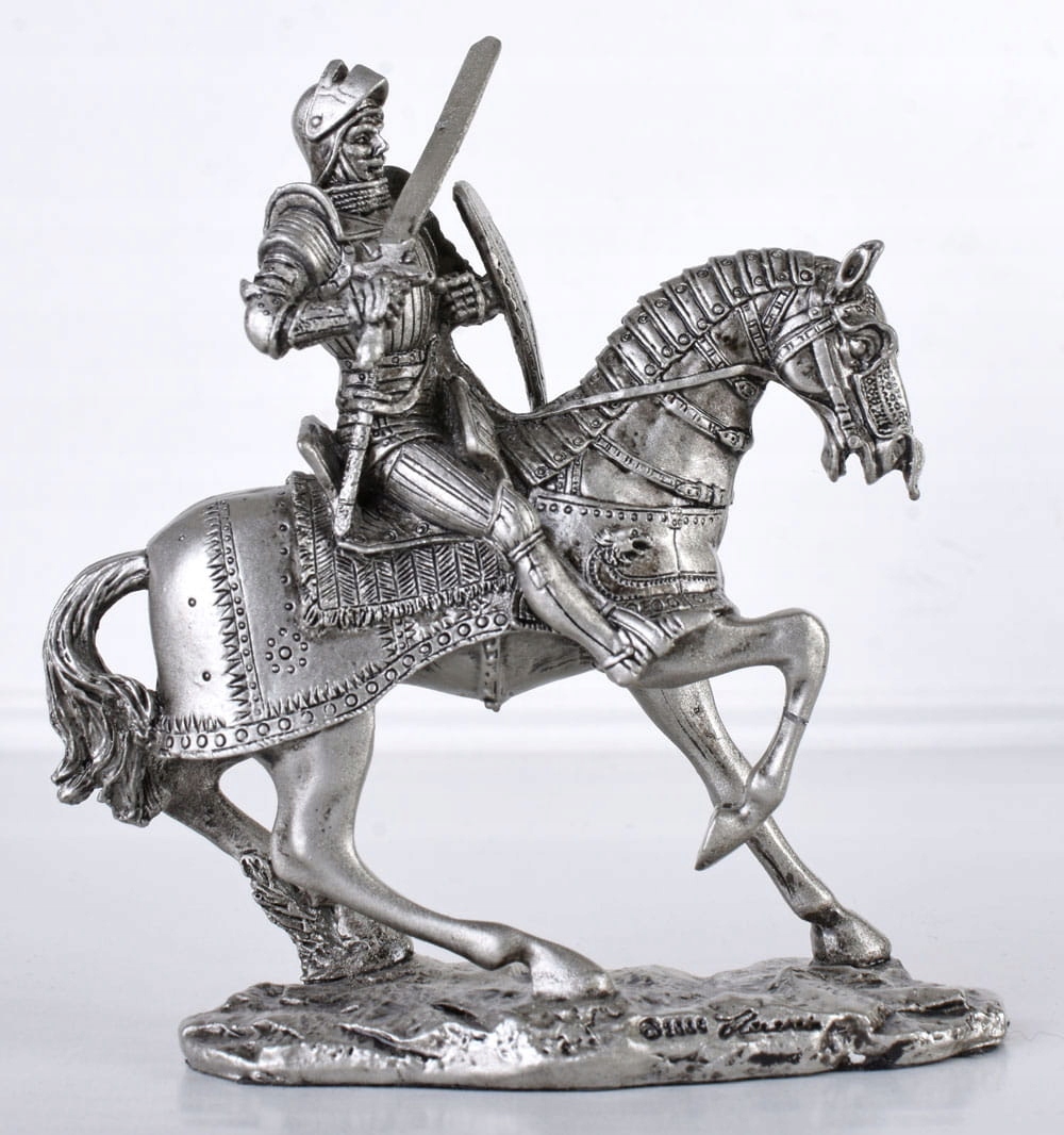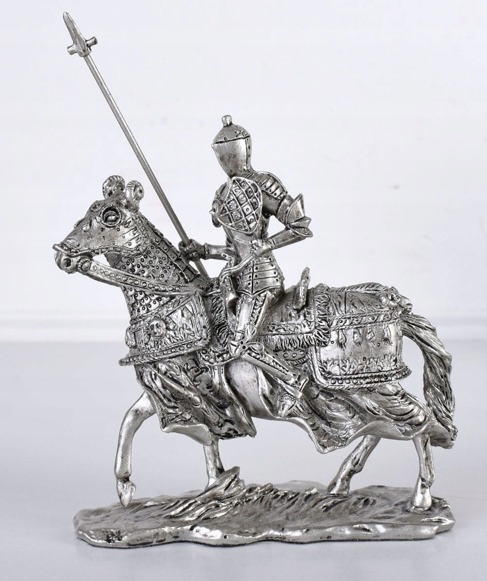 Цей унікальний набір з чотирьох фігурків доставить вас у світ середньовічних лицарських поєдинків та епічних битв. Вироблені з полірезіна та покриті покриттям з олов'яним покриттям, статуетки характеризуються високим рівнем деталей, показуючи лицарів у повній броні та на конях у динамічних позах. Дві статуетки зображують стоячих лицарів, а інші два показують лицарів на конях, готових до боротьби. Кожна статуетка представляє унікальні елементи броні та зброї, додаючи реалізм та справжність. Суцільні стенди забезпечують стабільність та лицарі дисплея в повному обсязі. Ці елегантні статуетки є чудовим доповненням до колекції кожного коханого історії та мистецтва.