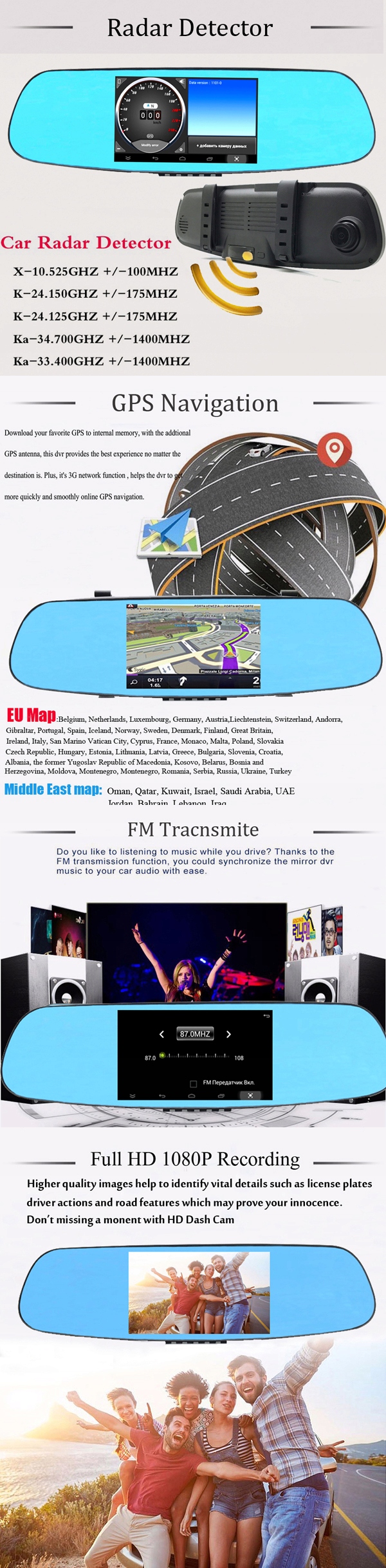 Антирадар Дзеркало GPS 5 Карта Android -відеореєстратор Android
