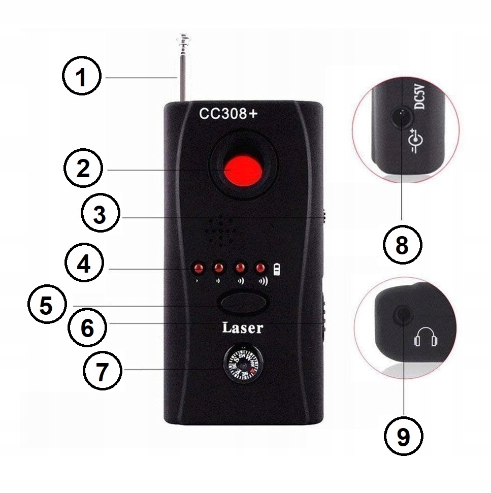 Пристрій почне передавати сигнал, коли ви знайдете прослуховуючий пристрій в радіусі 10 м. У міру наближення до шпигунського пристрою звуковий і світловий сигнал посилюється.