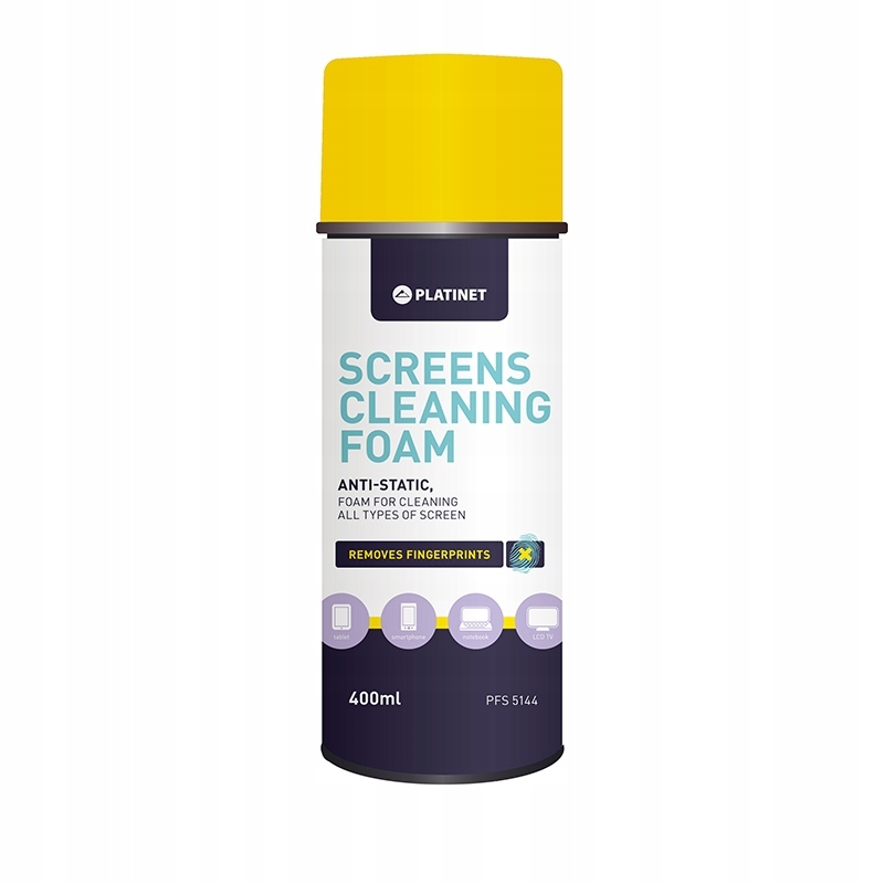 Піна для очищення скляних поверхонь, плазмових, LCD, OLED, сенсорних екранів, ноутбуків, принтерів, сканерів, автомобільних навігацій, телефонів, телевізорів та інша електроніка. Видаляє жир, пил і відбитки пальців. Не залишає розводів і має антистатичні властивості. Не містить алкоголю.