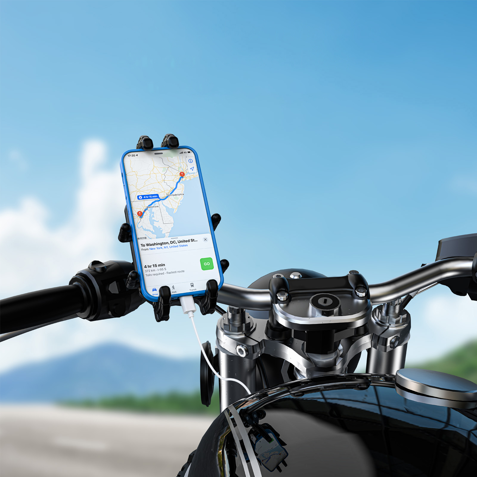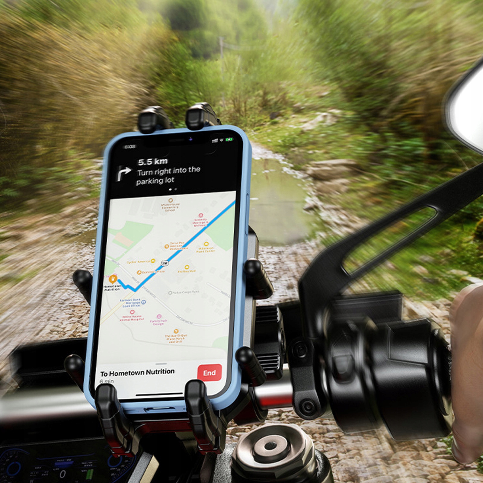 - Рукоятка оснащена антивібраційною системою, яка запобігає передачі вібрацій від автомобіля під час руху на телефон. Використані 4 амортизатори вібрації запобігають пошкодженню делікатних оптичних елементів телефону