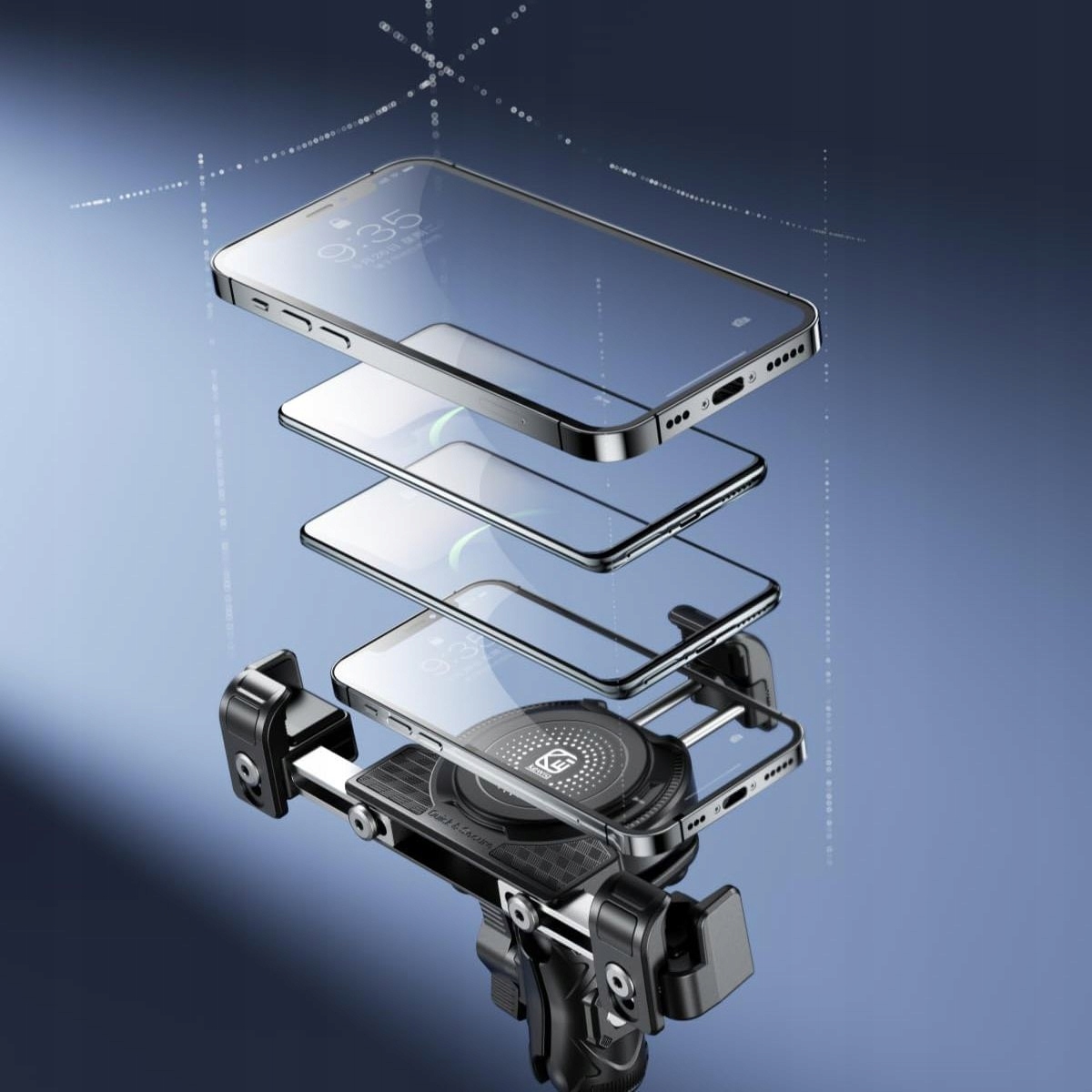 Тримач має систему гасіння вібрації - 4 подушки між головою та кріпленням поглинають вібрацію від автомобіля та дороги, щоб телефон був стійким і не струсити. Амортизація не тільки служить телефону, але й дозволяє зручно читати навігацію під час водіння. Рукоятка ідеально підходить не тільки для звичайної їзди, але й для їзди по бездоріжжю або пересіченій місцевості.
