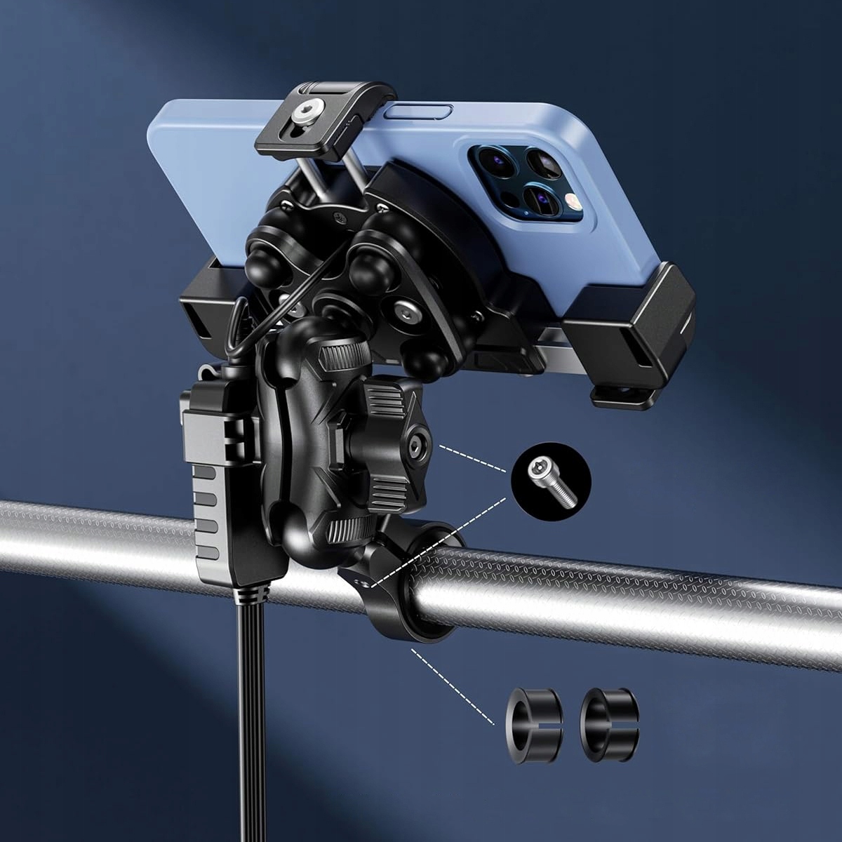 АНТИВІБРАЦІЙНИЙ ТРИМАЧ ДЛЯ МОТОЦИКЛА З ЗАРЯДНИКОМ ТЕЛЕФОНУ