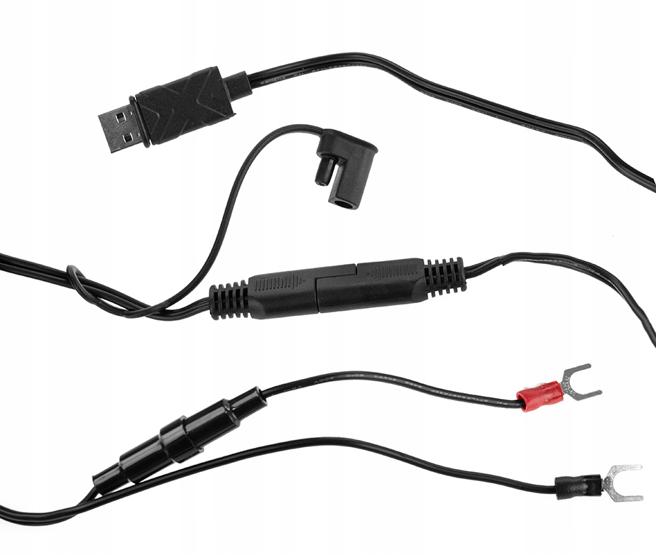 Кабелі, що входять до комплекту, оснащені кільцевими клемами або штекером USB.
