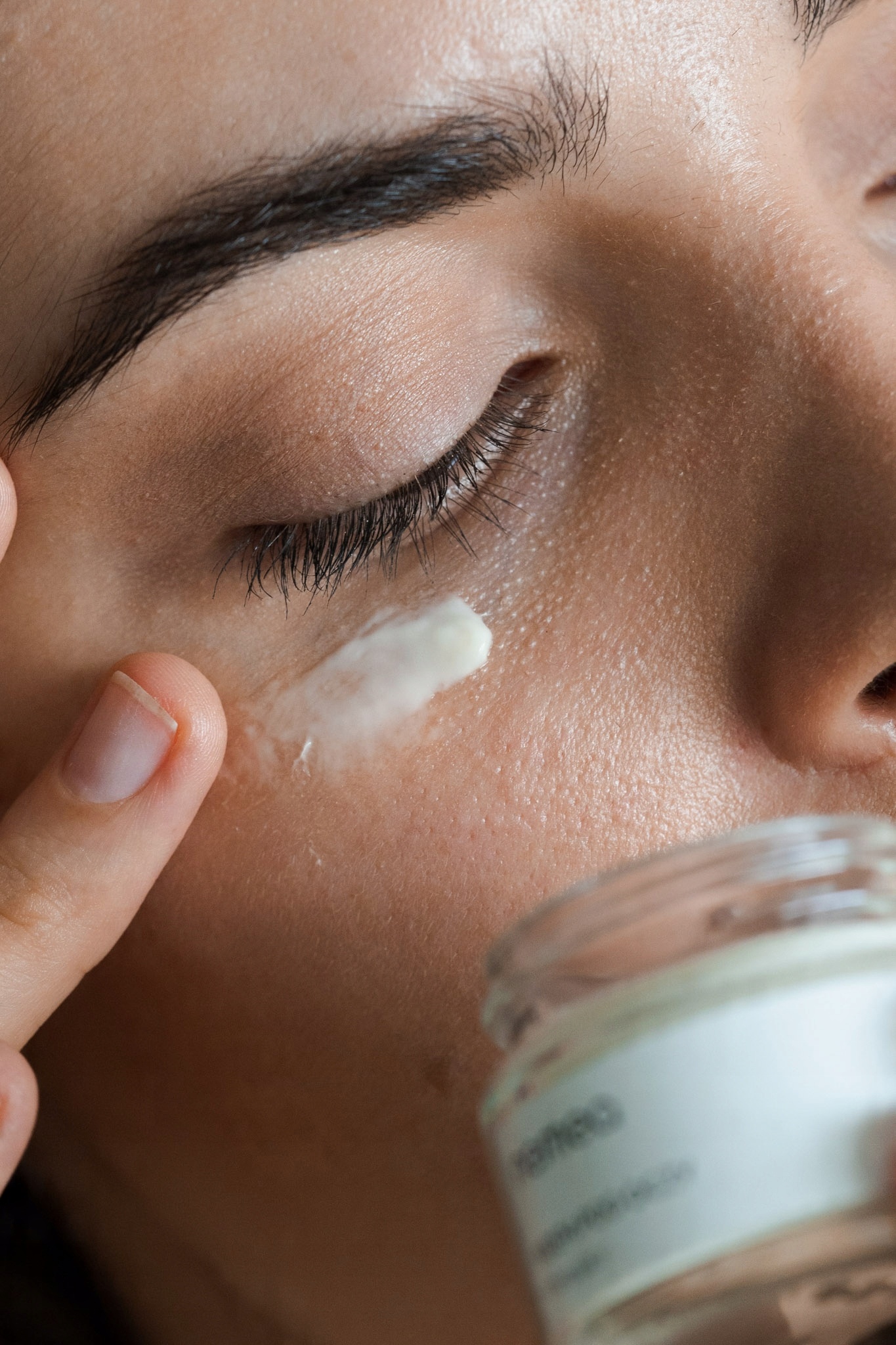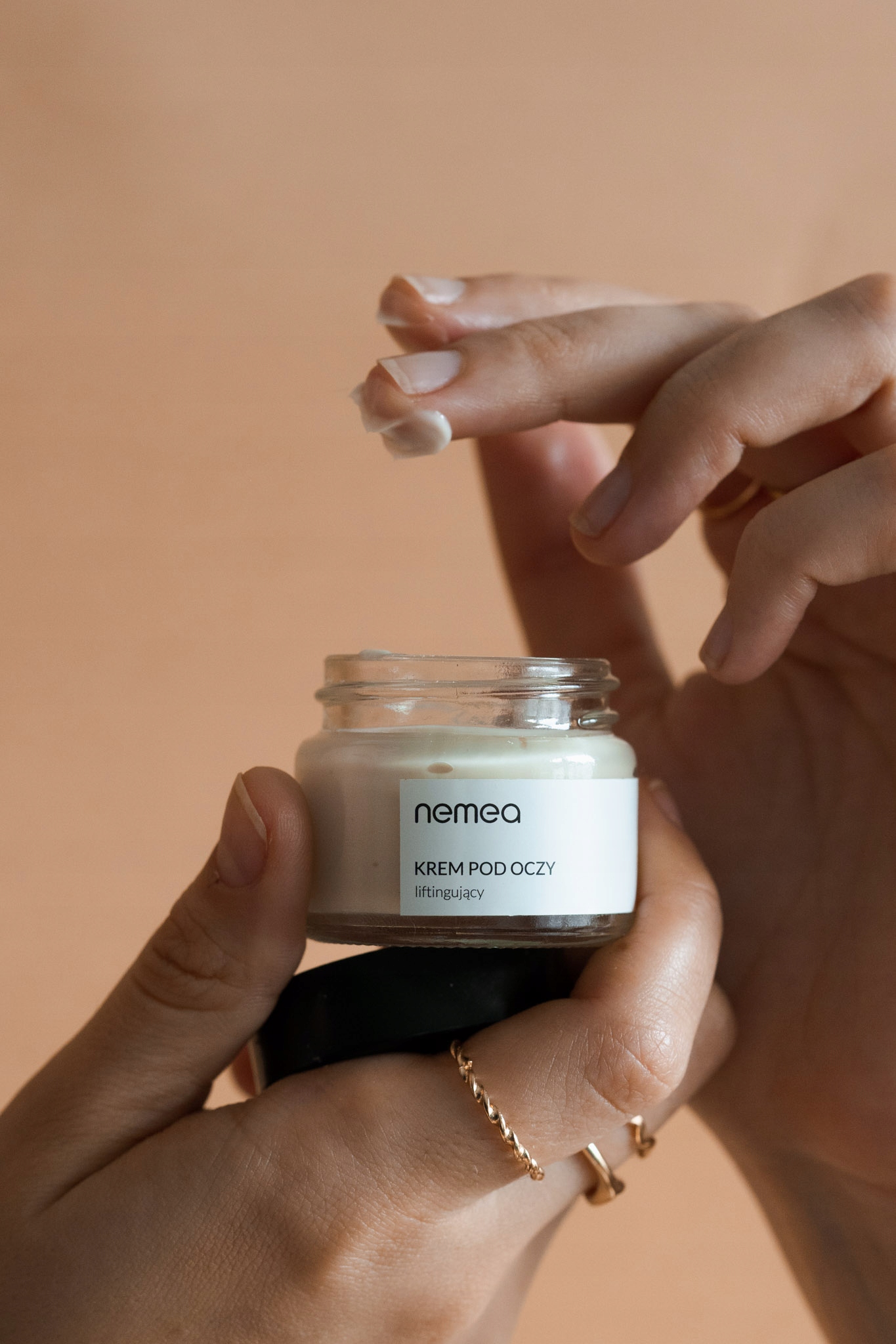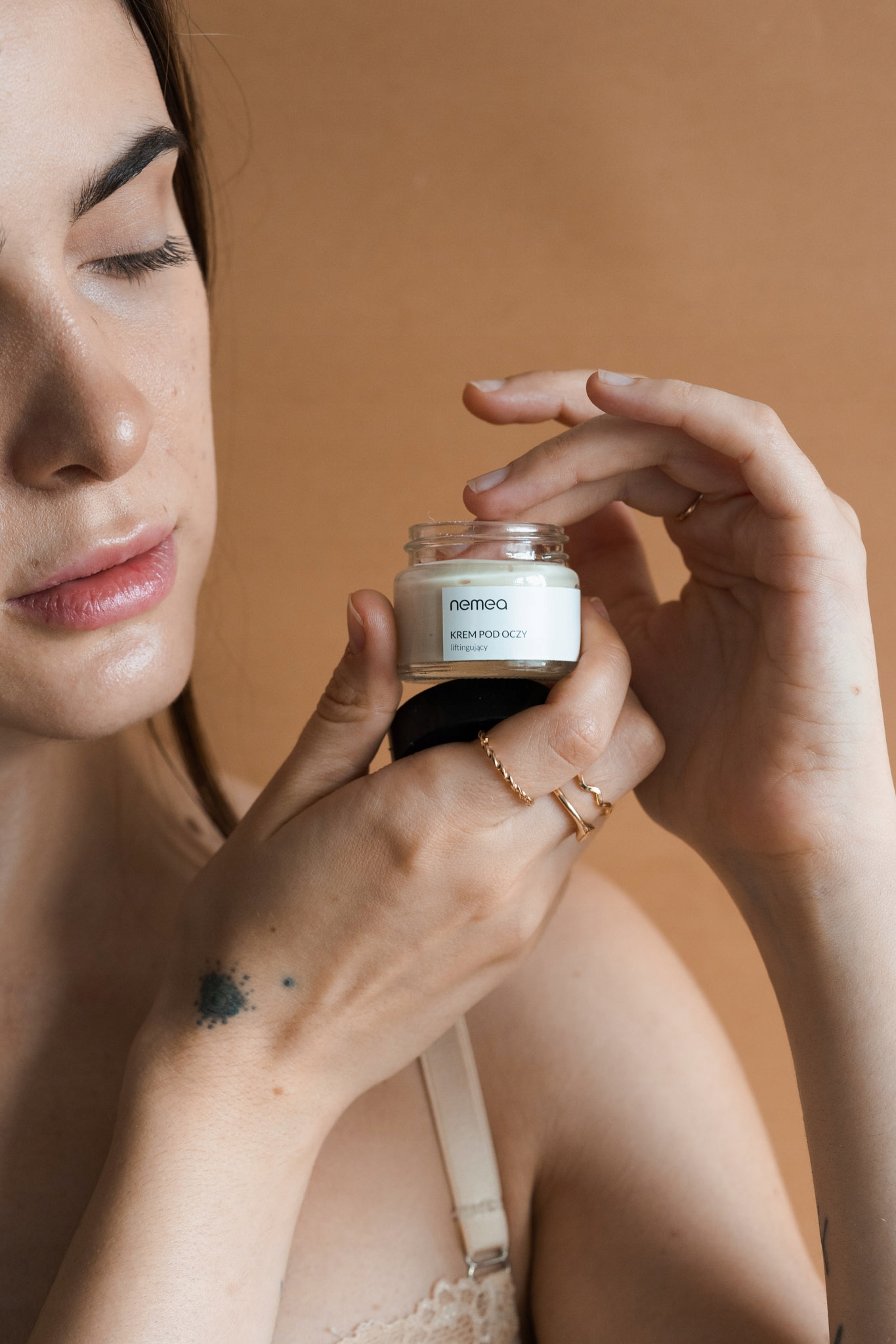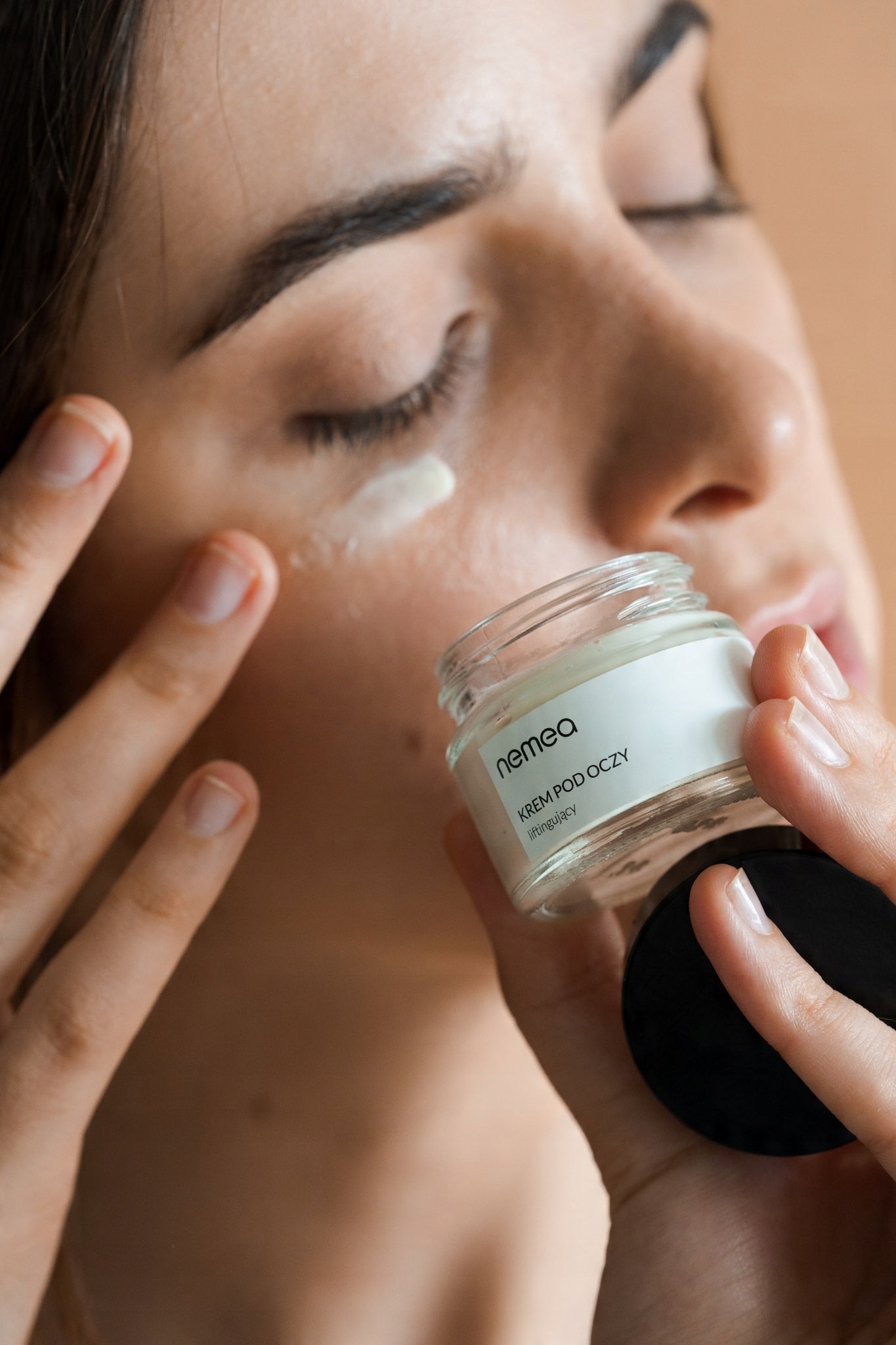 - Косметичний засіб наносити на шкіру точково, в невеликій кількості. Кінчиками пальців обережно нанесіть крем під очі на верхню повіку.