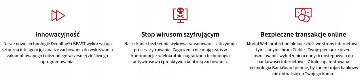 Антивірусний сканер перевіряє кожен файл, що надходить з Інтернету. Зупиняє завантаження заражених документів і зображень. Це означає, що ви не станете жертвою атаки зловмисного програмного забезпечення, несвідомо завантаживши «щось» з Інтернету. Інтернет-безпека заснована на проактивному захисті в поєднанні з найновішими базами даних сигнатур вірусів у хмарі.