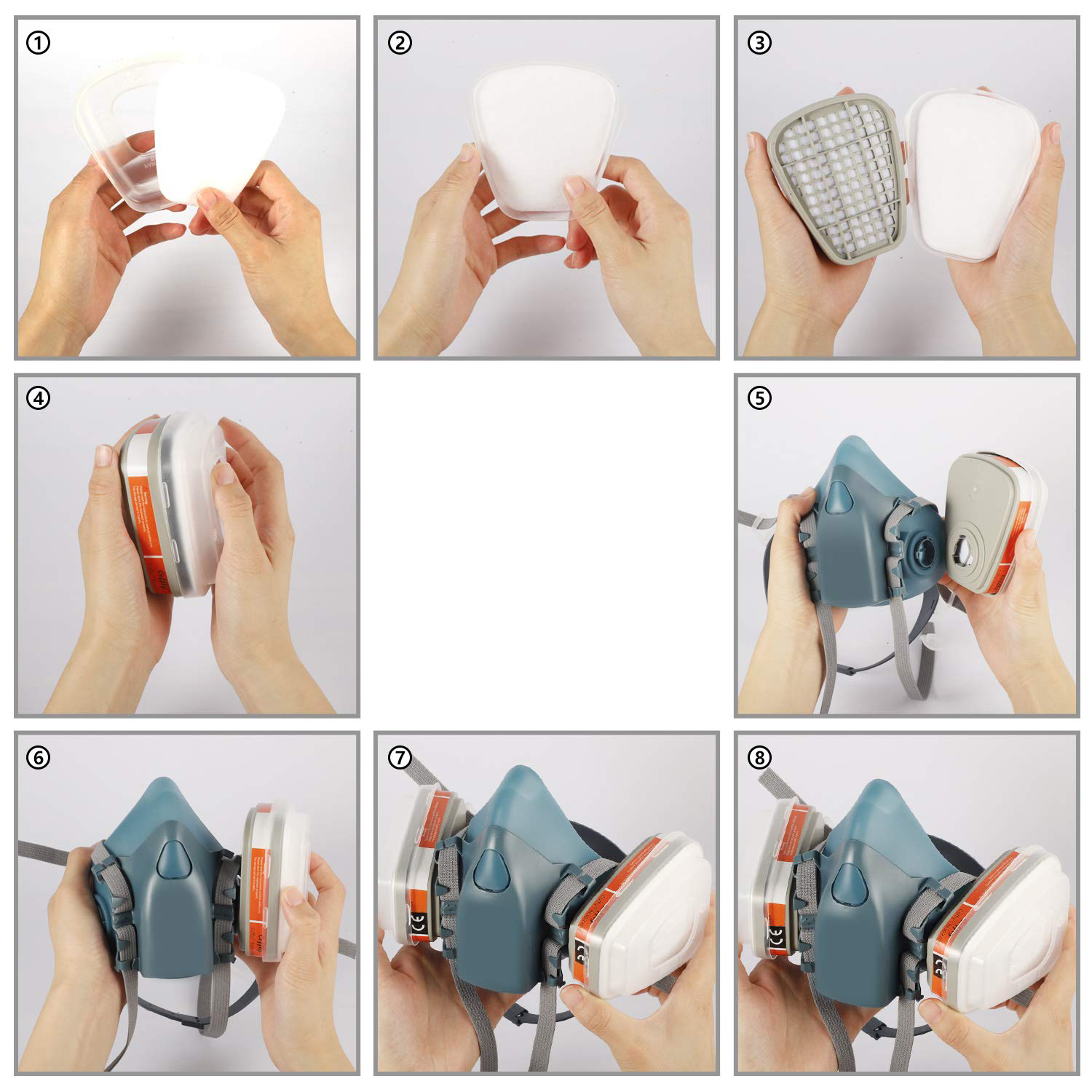 Професійні респіратори оснащені системою подвійної фільтрації, яка ефективно блокує96% органічні випаровування/гази, пилок, пил та інші частинки в повітрі.