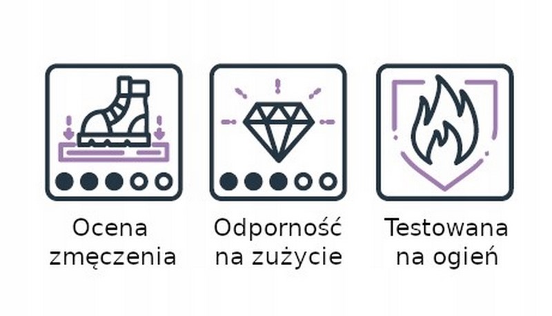 Килимок гарантує хорошу амортизацію та комфорт, завдяки чому дозволяє зменшити біль у стопах, ногах або спині, що виникають під час роботи в положенні стоячи. Ефективно допомагає боротися з втомою на робочому місці. Крім того, він забезпечує ізоляцію від холодних бетонних підлог.