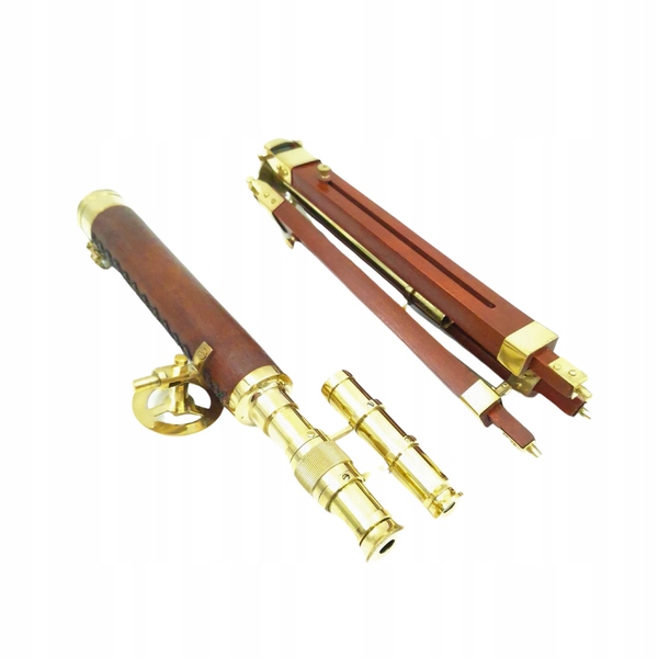 Відкрийте для себе досконалість ремесла з телескопом, виготовленим з найвищої латуні якісної, встановленої на стабільному дерев’яному штативі.