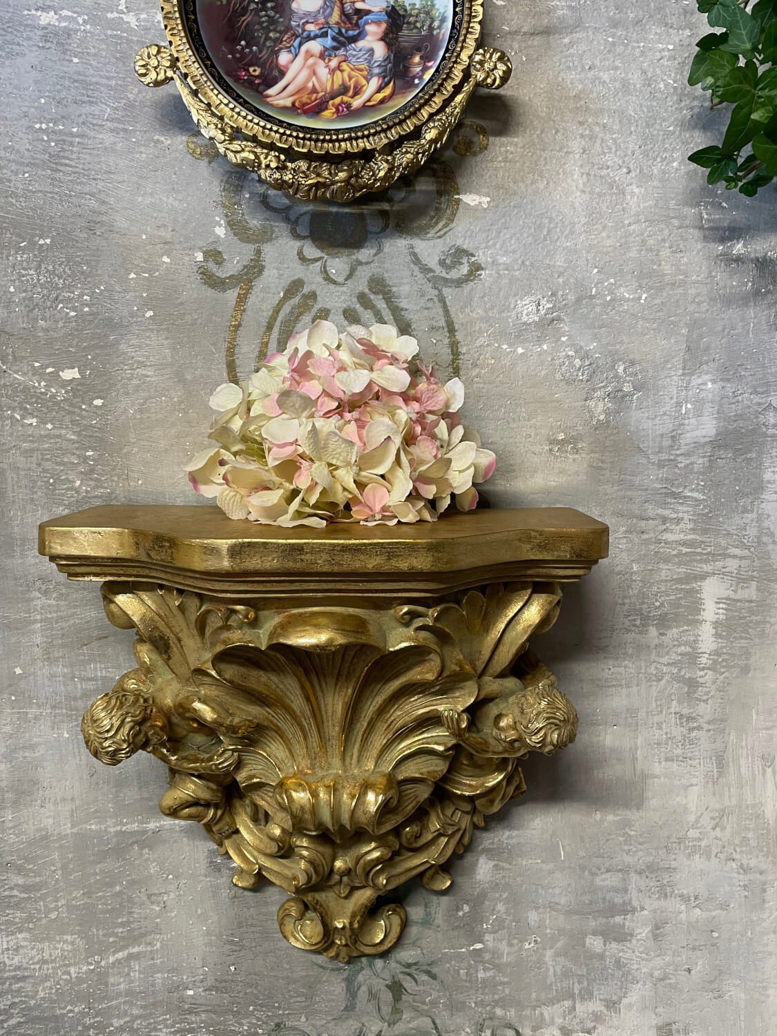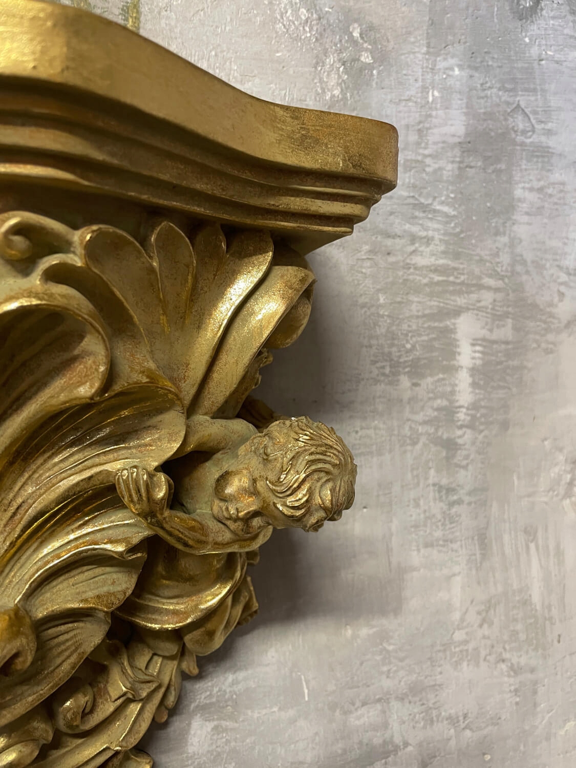 різьблена полиця консолі золотих стін з бароковим ангелом