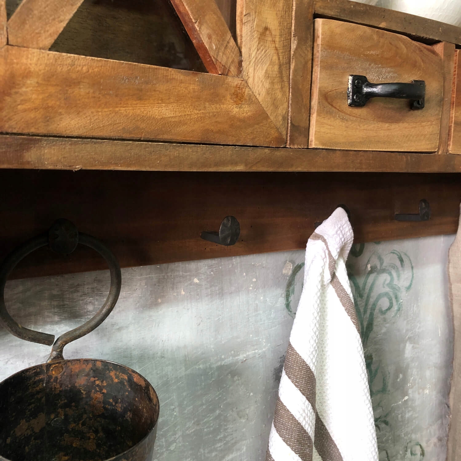 ANTKI24 - Сільський настінний шафа з дерева з ящиками та гачками
