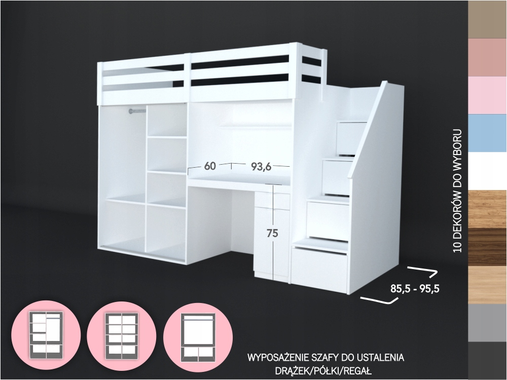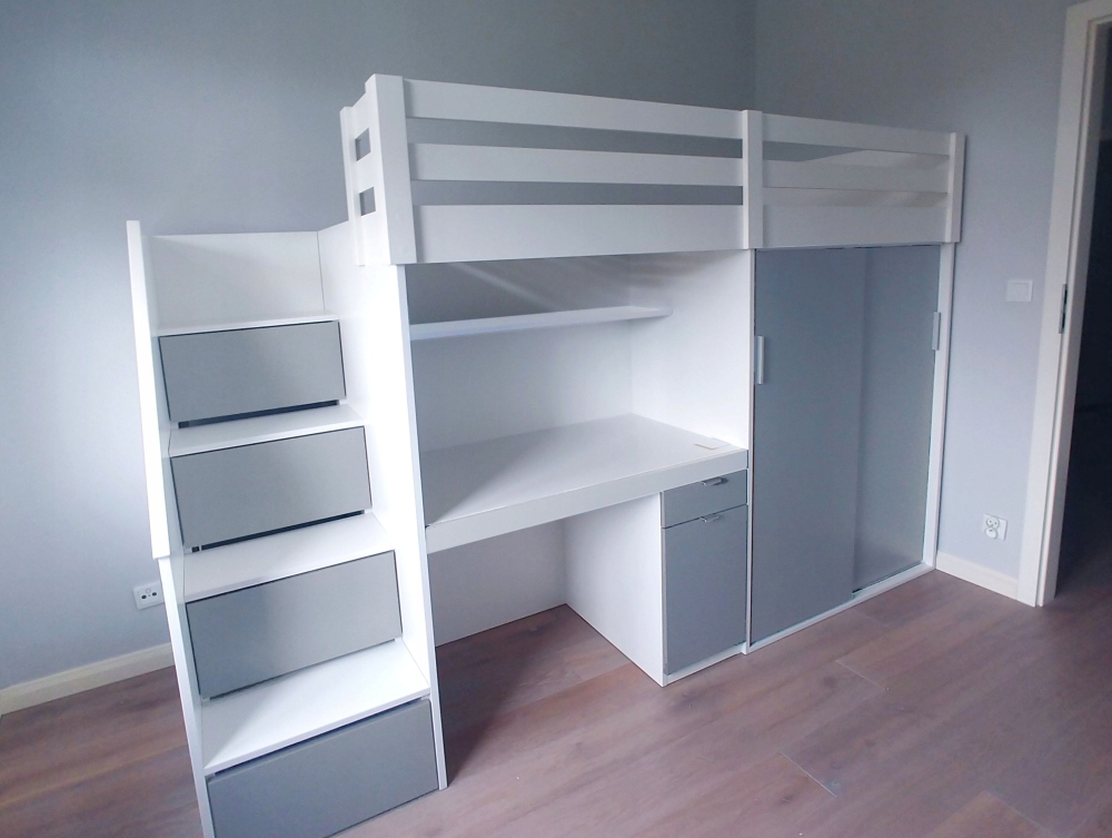 Примітка. Ми хотіли б повідомити вас, що ми зараз приймаємо замовлення з датою впровадження до 6 тижнів. З нуля. Умови транспорту та складання визначаються на основі типу порядку та відстані. Глибокий гардероб та стіл, а отже, основне обладнання кожної дитячої та молодіжної кімнати. Замикаючий гардероб використовує повну глибину структури, тобто близько 95 див. Внутрішня частина гардеробу може бути обладнана великими поличками або стрижнями та меншими поличками за ним. Фронти гардеробу ковзають. Завдяки своїй формі та можливостям модифікації кольорів ліжко може обслуговувати як молодих, так і старших користувачів. Ми вносимо індивідуальні зміни в проектах та адаптуємо їх до потреб клієнта. Сходи, стіл та гардероб можна встановити в будь -якому порядку. Ми використовуємо матеріал вітчизняного виробництва, незрівнянно твердий, ніж легкі дошки, що використовуються в відомих мережах та імпортних продуктах. Ліжко-15 кг.