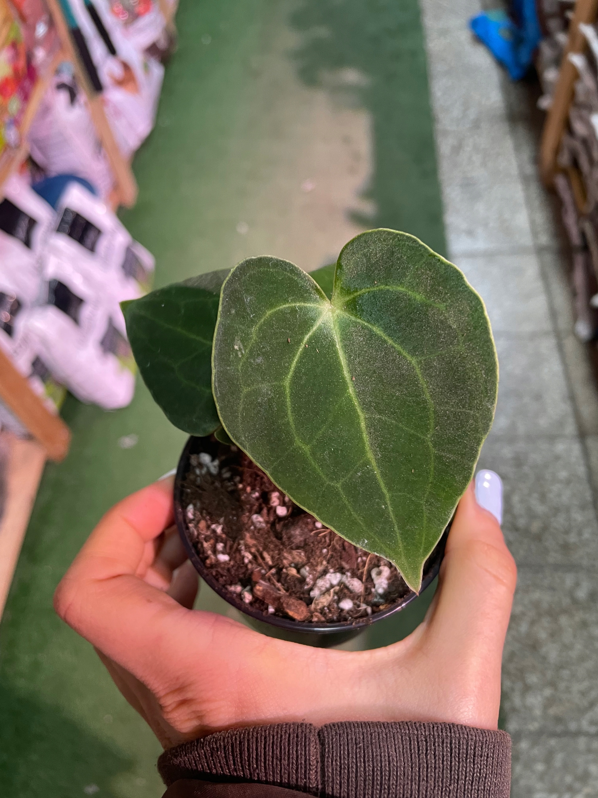Крихітні саджанці (горщик 8 см) прекрасного оксамитового антуріума кларінервіума.