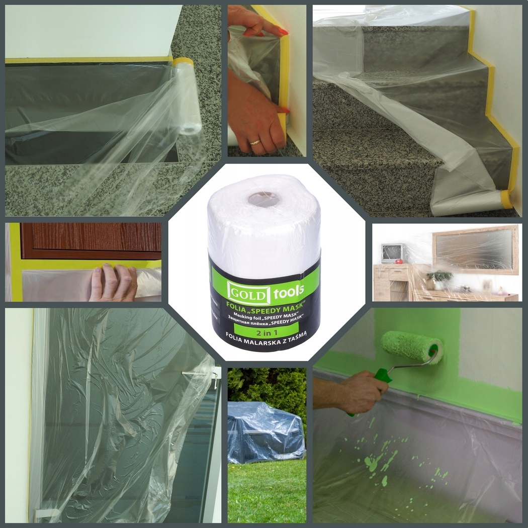 Дуже простий у використанні, дозволяє миттєво захистити будь-яку поверхню. Фольга є водонепроникною та стійкою до розривів і постійно прикріплена до спеціальної паперової стрічки для кріплення. Стрічка не залишає слідів клею протягом 3 тижнів після нанесення.