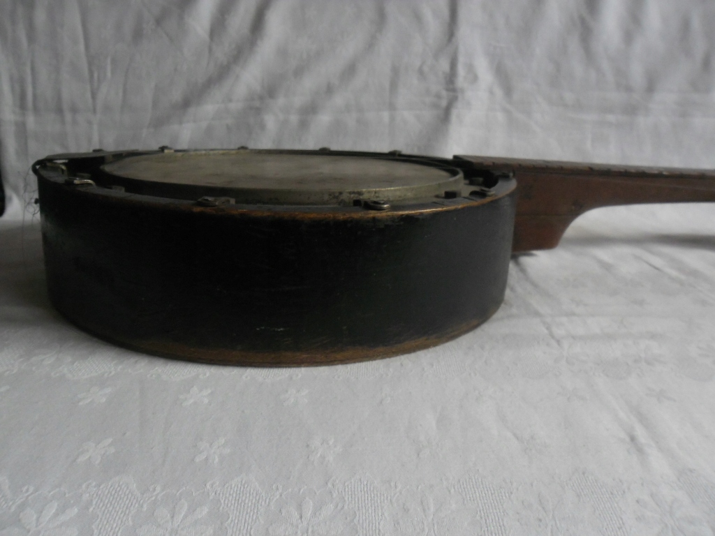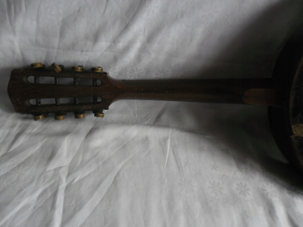 ГАРНЕ АНТИКВАРНЕ БАНДЖО ДЛЯ РЕМОНТУ АБО ЯК ДЕКОРАЦІЯ СТІНИ. КОНСТРУКЦІЯ МІЦНА, ВНУТРІШНЯ ДЕРЕВО ТА МЕТАЛ, МЕМБРАНА ШКІРА. 8 СТРУН. СТРУНИ ЛАТУННІ І МОЖЕ БУТИ КІСТКОЮ. ДЕТАЛІ ВИДНІ НА ФОТО . НЕМАЄ СТРУН, НЕМАЄ СТРУН, НІ ПОГАНО РЕМОНТОВАНА. У ВСЕ РАМКУ ЦЕ ЧУДОВИЙ КОЛЕКЦІЙНИЙ ПРЕДМЕТ.